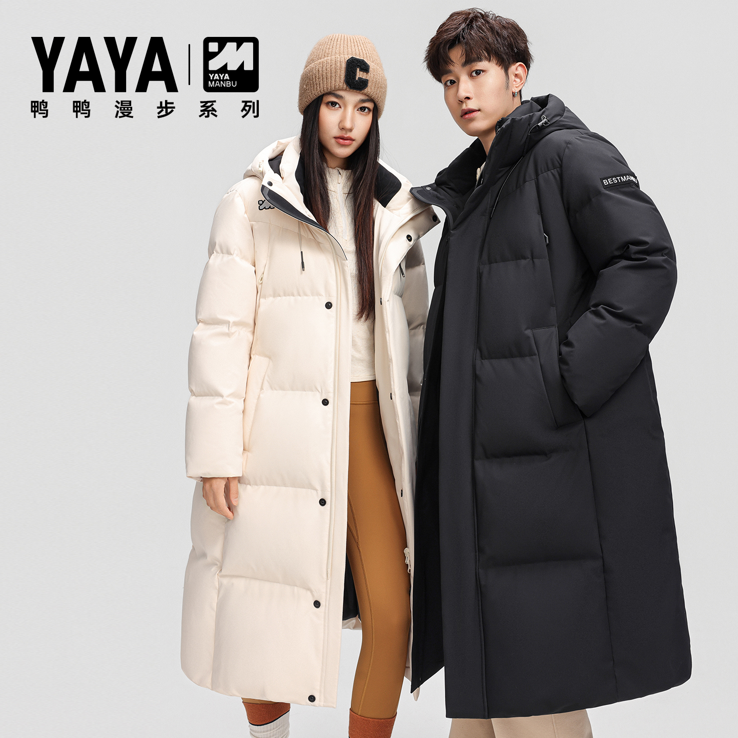 雪中飞服饰2025秋冬新款 运动户外条纹百搭连帽羽绒服男女情侣 长款
