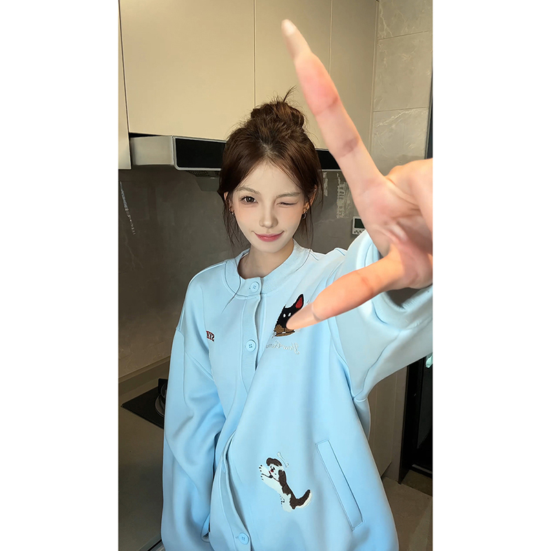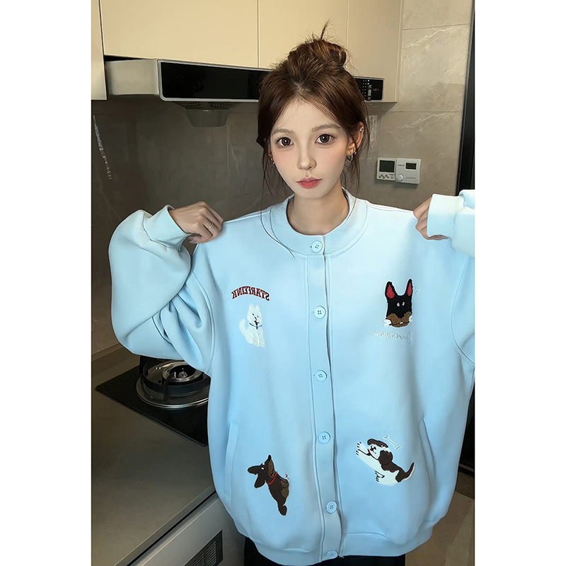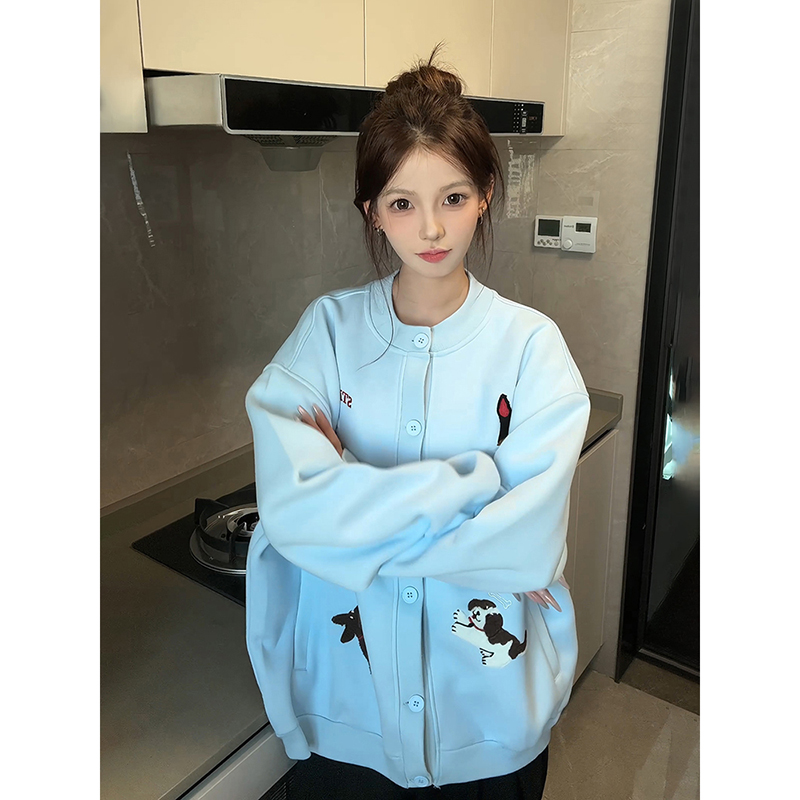 落肩袖 BJHG不计后果美式 新款 秋季 潮牌暖皮宽松圆领上衣女 卫衣男款