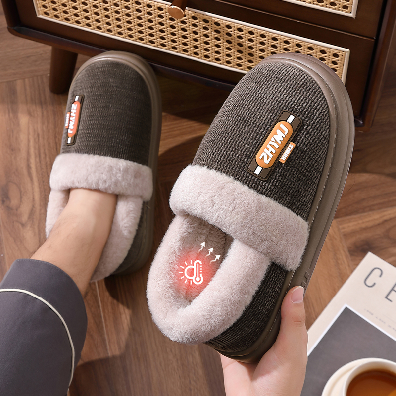 室内家居包跟加厚加绒防滑保暖棉鞋 中老年棉拖鞋 冬季 2025新款 男款