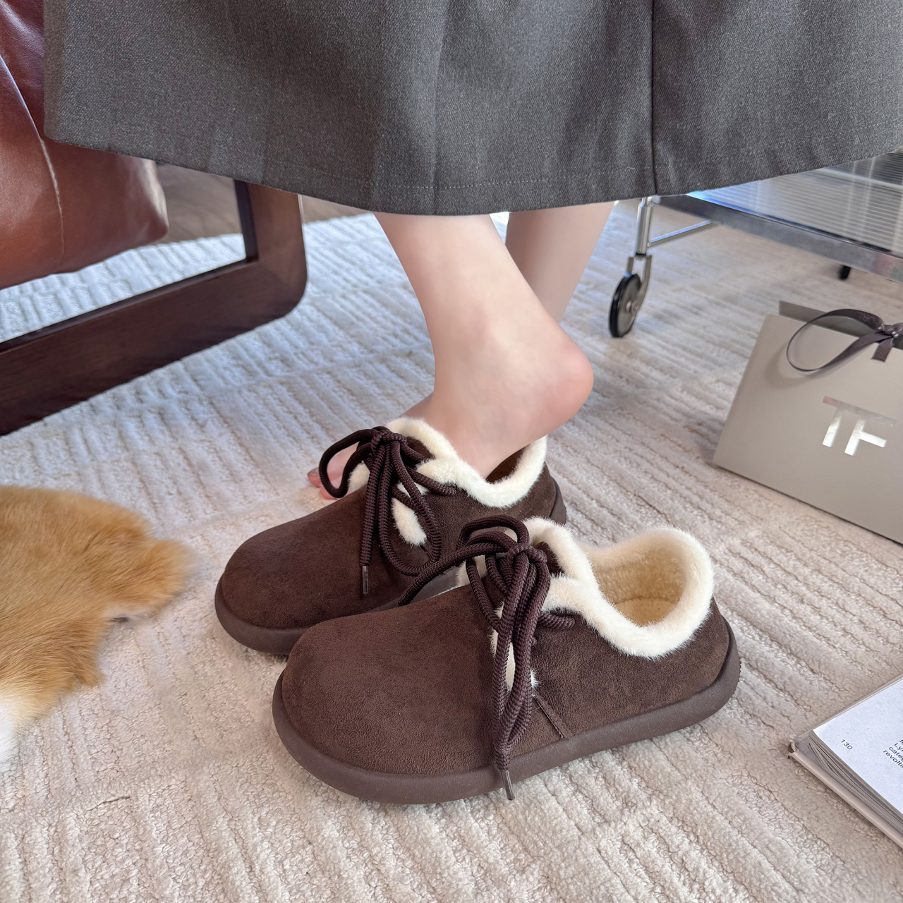 加绒加厚保暖一脚蹬软底防滑妈妈鞋 新款 雪地靴 女2024冬季 棉鞋