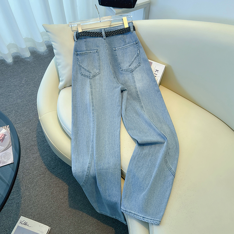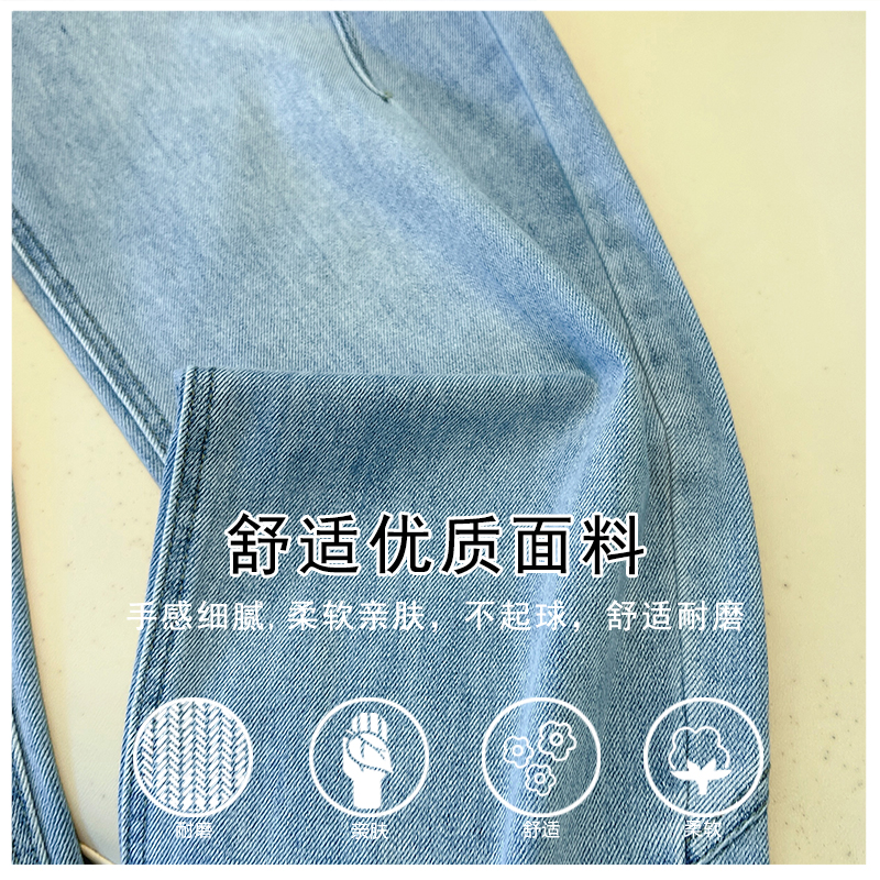显瘦百搭垂坠感长裤 2025阔腿裤 子 女浅蓝色春秋新款 高腰直筒牛仔裤