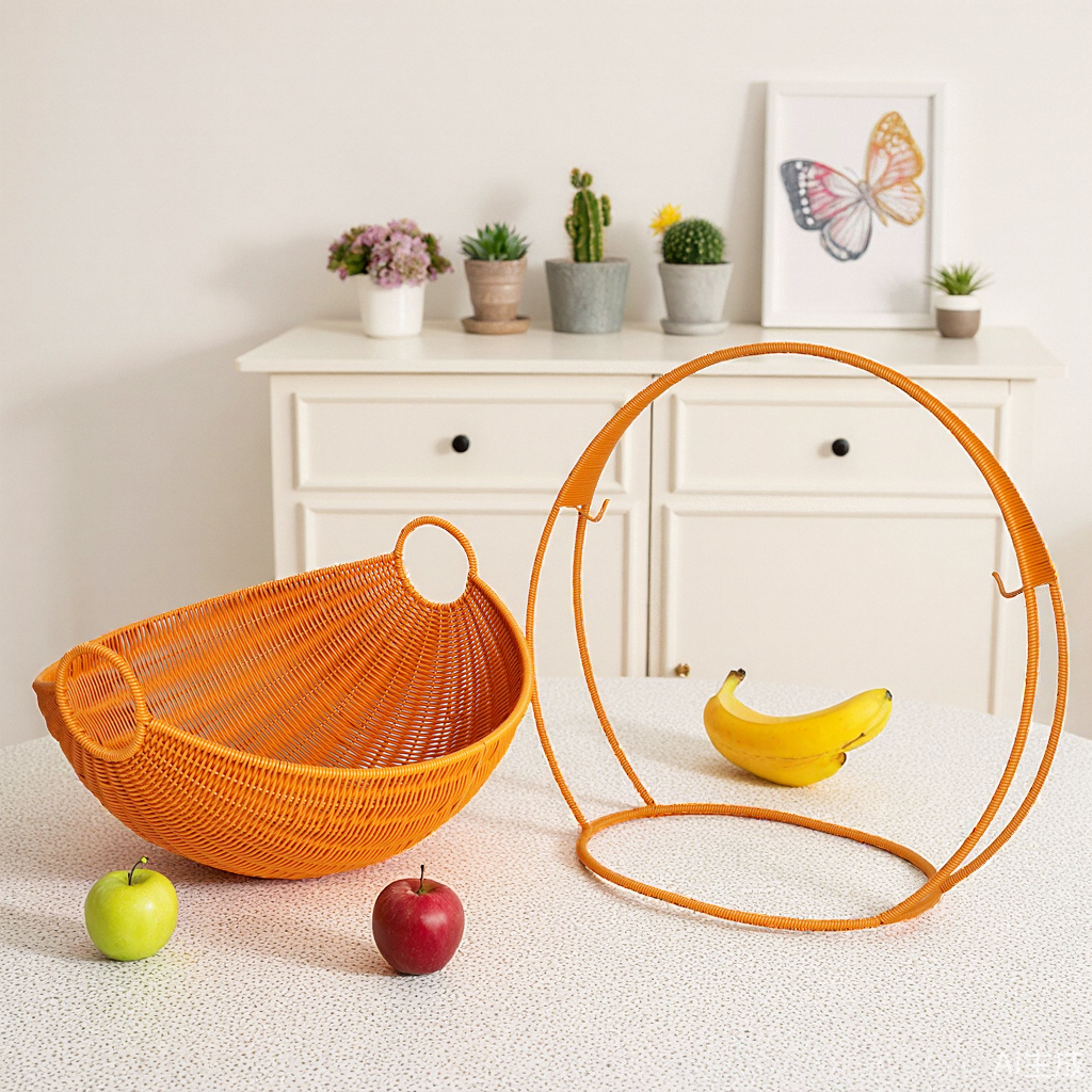 仿藤编创意水果收纳架猫咪摇摇篮平替猫窝客厅零食收纳篮家用果筐