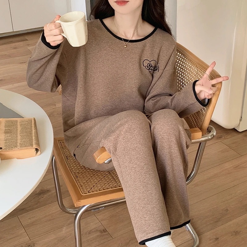 长裤 2025新款 家居服可外穿长袖 圆领套头女士睡衣套装 德绒 秋冬季