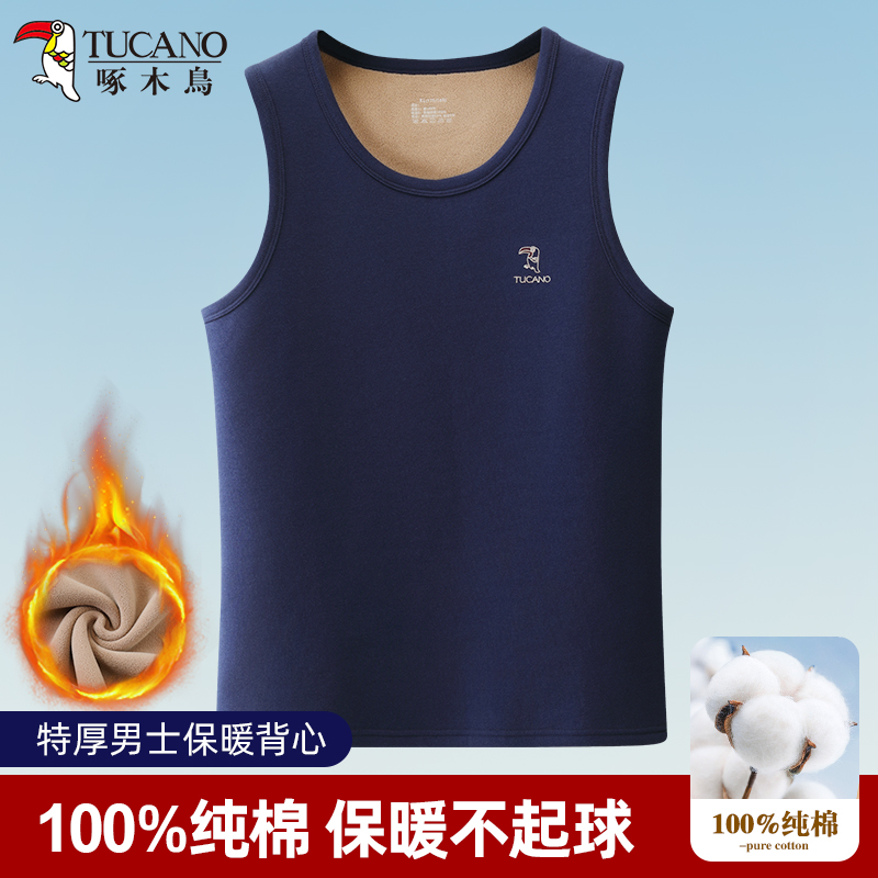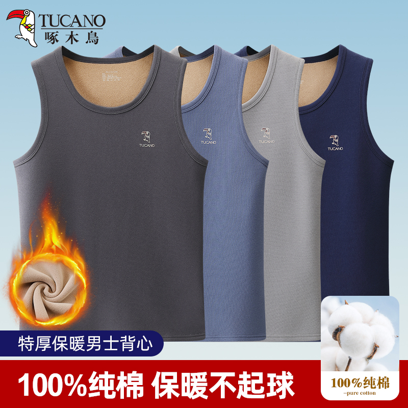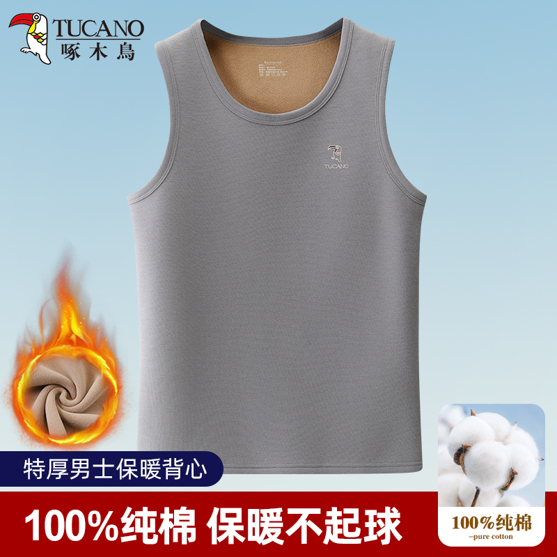 内搭坎肩 加绒加厚男士 啄木鸟中老年灰色纯棉保暖无袖 马甲背心冬季