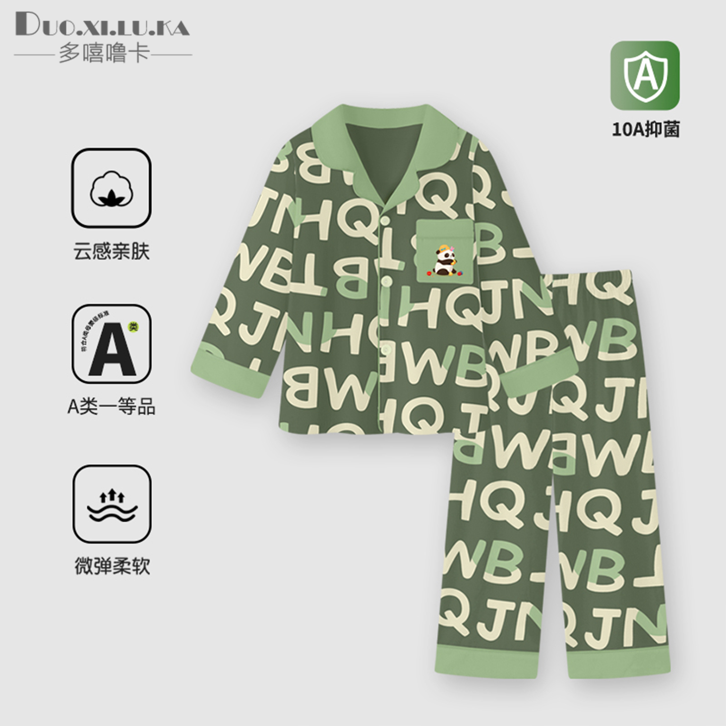 开衫 长袖 翻领卡通家居服 男童女童春秋新款 儿童睡衣A类纯棉套装