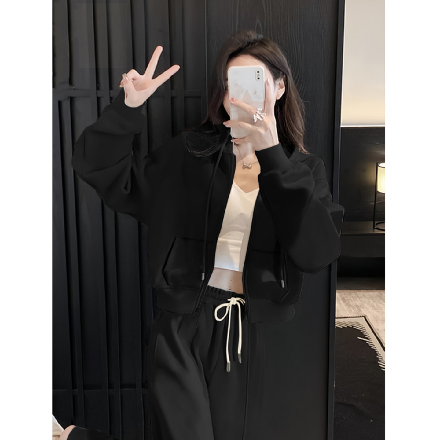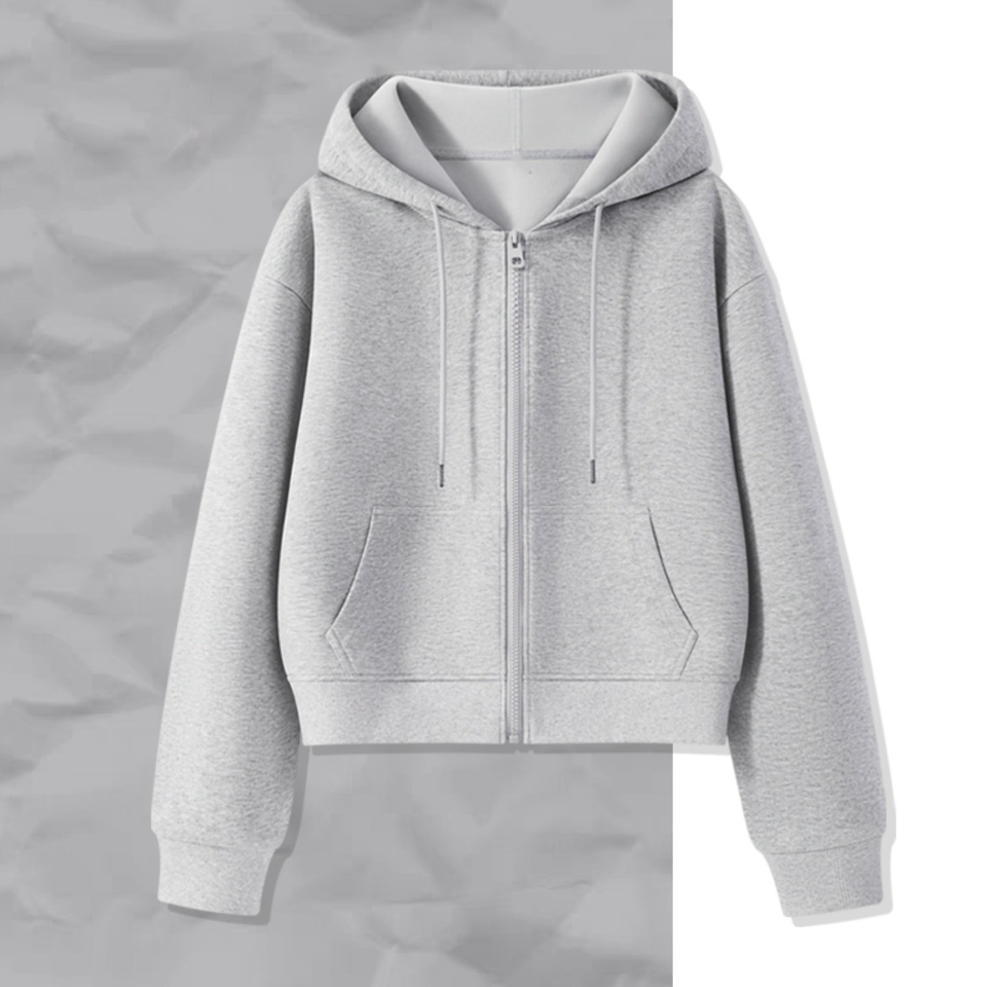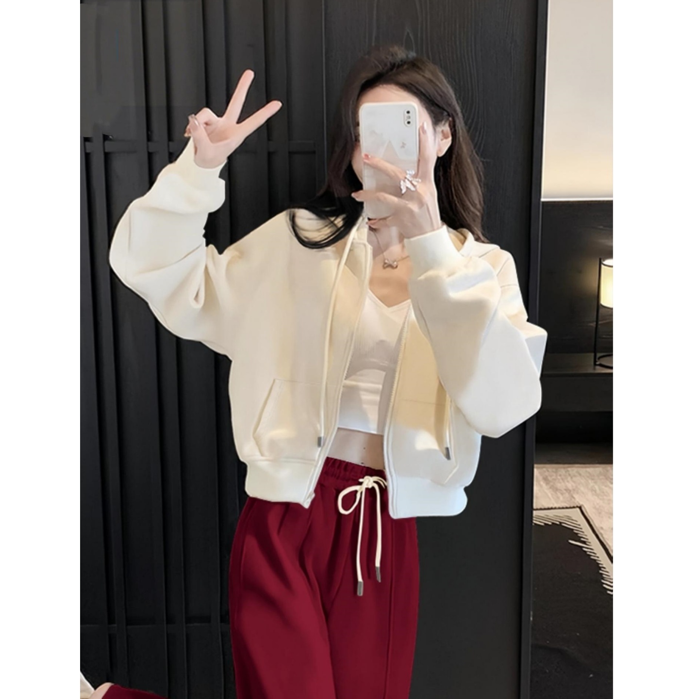卫衣外套长袖 浅灰色小个子开衫 拉链上衣女2025秋季 韩版 女 新款 短款