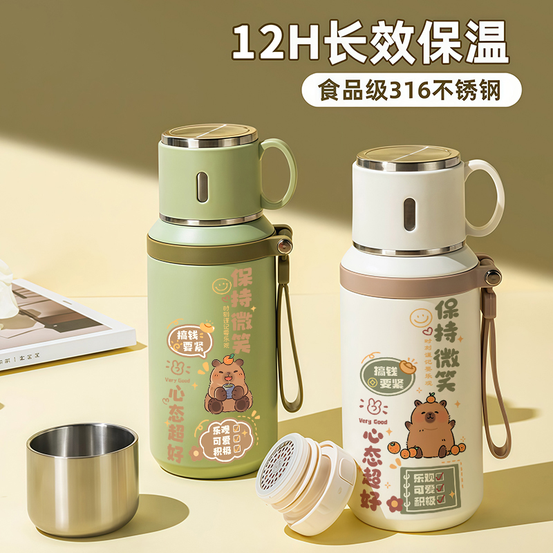 卡皮巴拉316保温杯周边可爱便携水杯高颜值学生儿童女生上学杯子