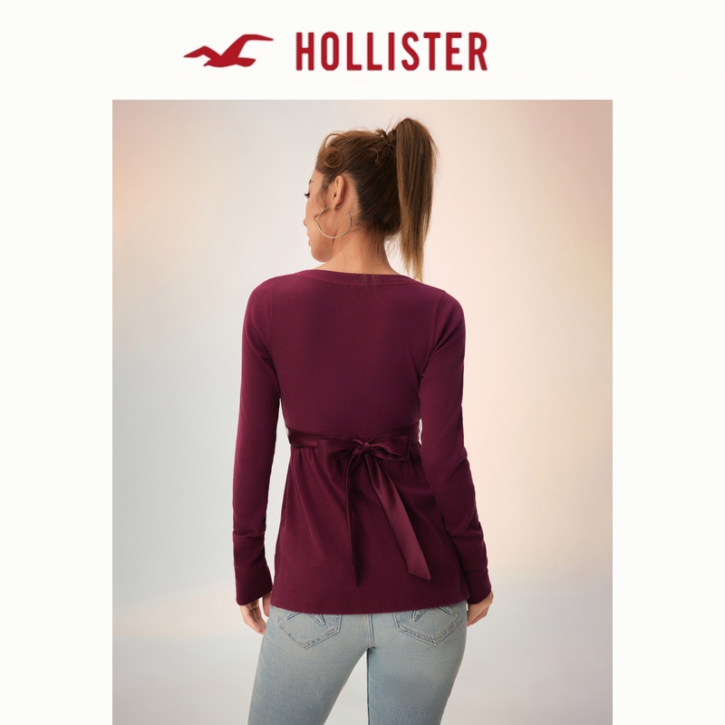 339 Hollister25秋冬新款 T恤女装 辣妹蝴蝶结V领系带长袖 5080 美式