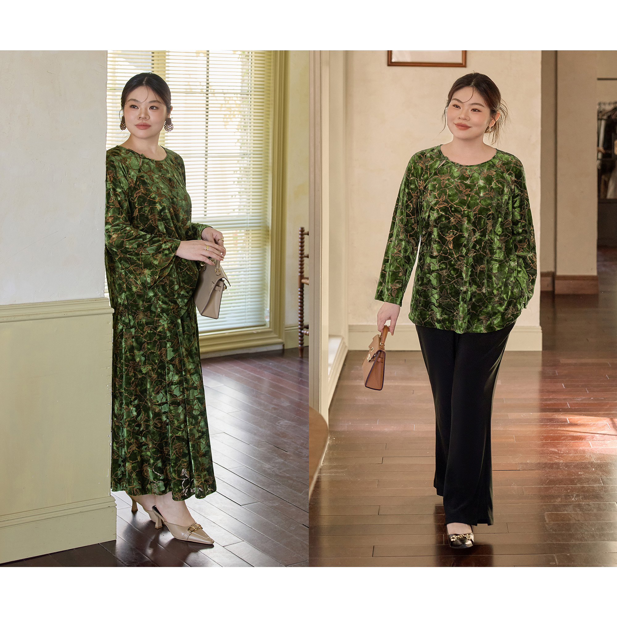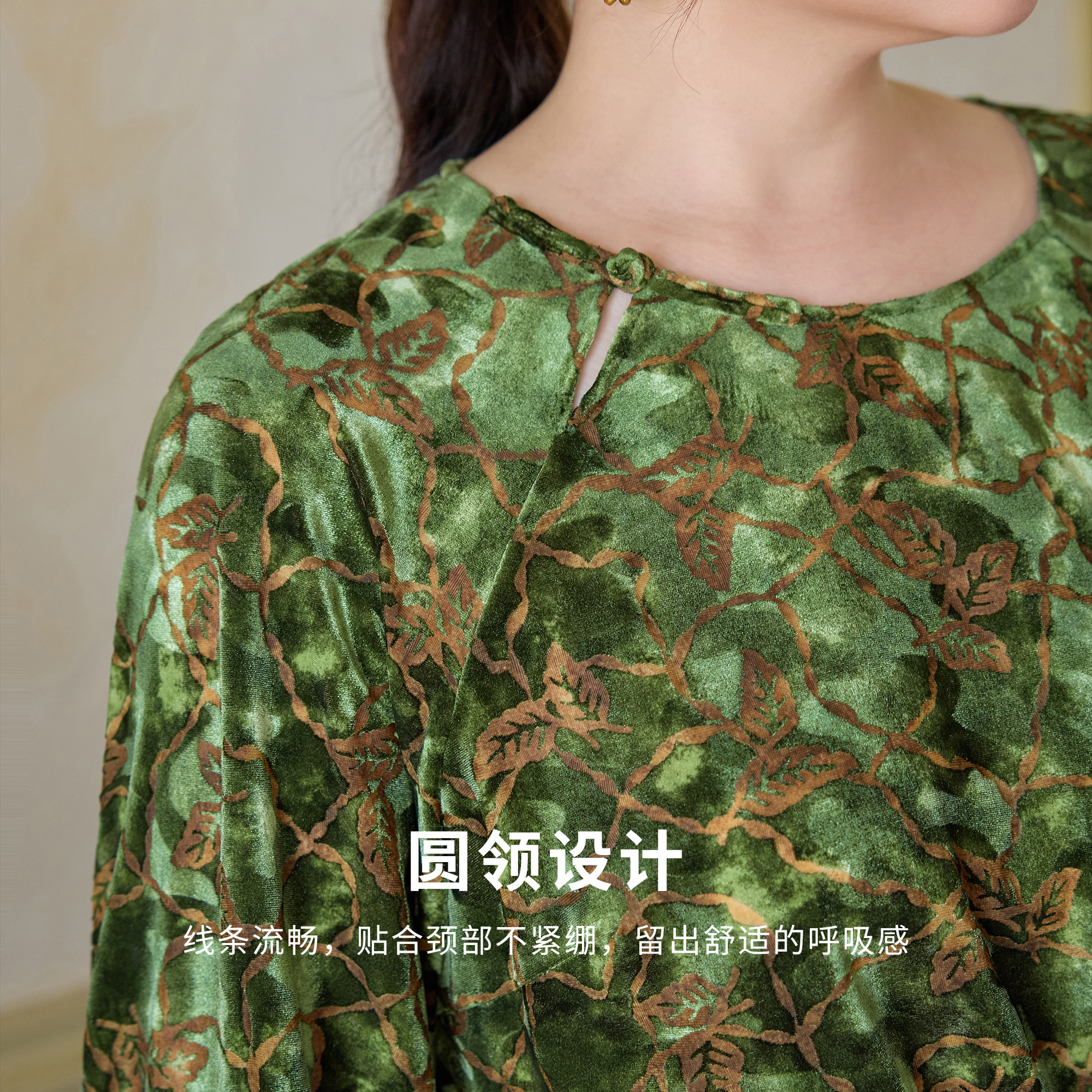 复古丝绒圆领上衣胖mm长袖 女装 气质T恤 大码 美丽客栈2025秋冬新款