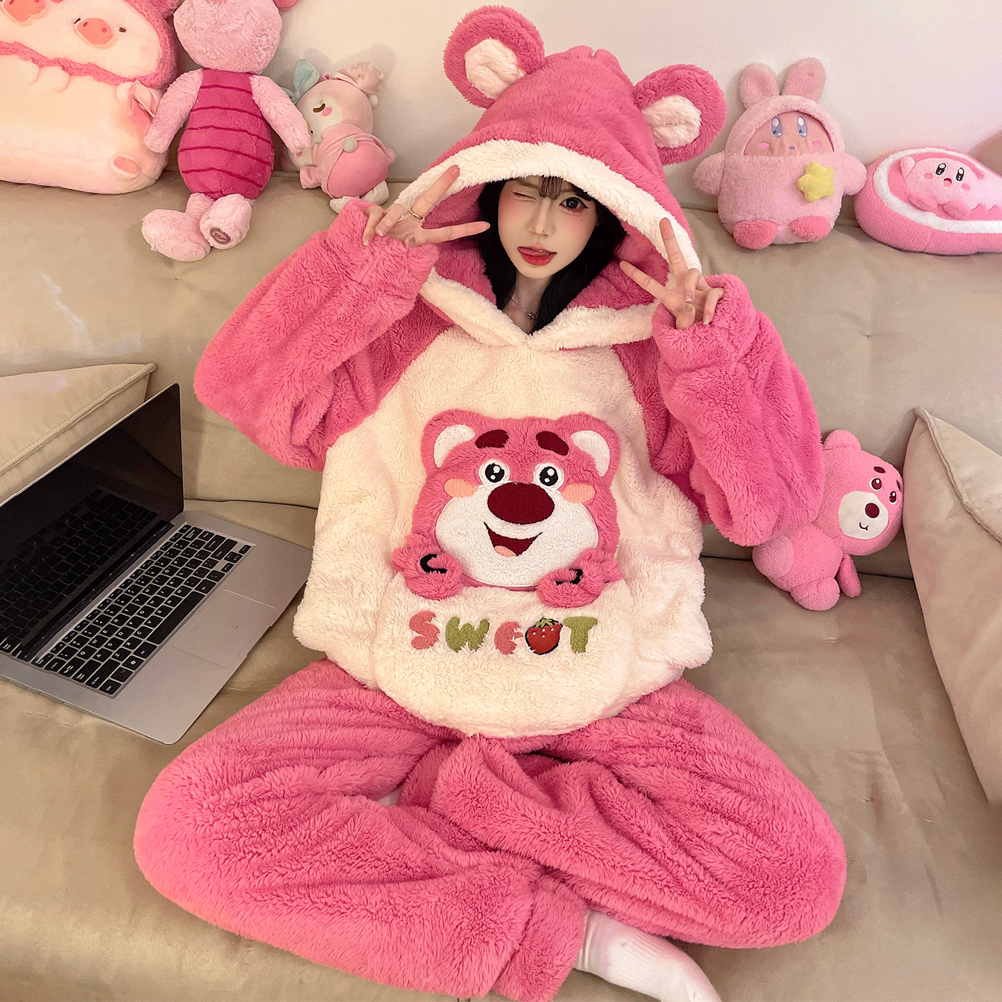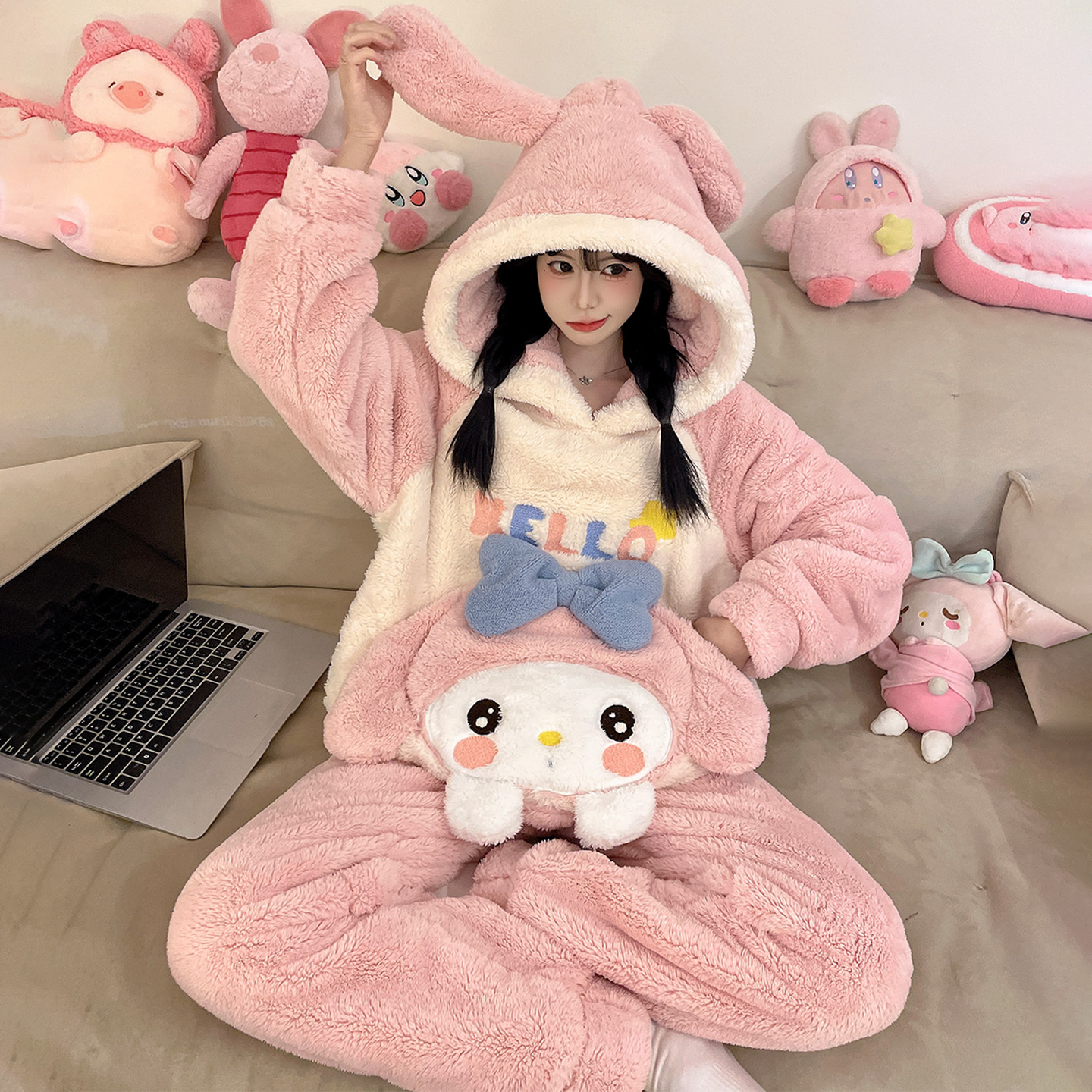 家居服两件套装 连帽学生大码 秋冬季 少女可爱凯蒂猫珊瑚绒睡衣女款