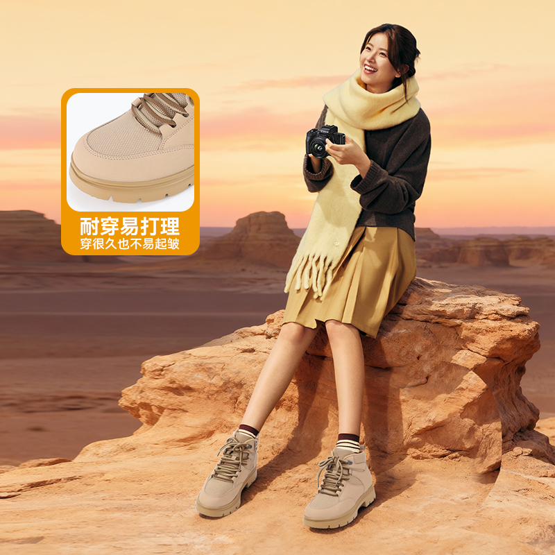 沙漠靴厚底短靴 靴子户外真皮单靴登山鞋 帆布马丁靴女2025新款 秋季