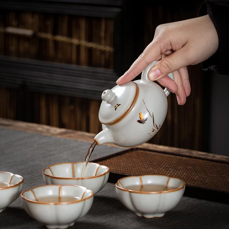 汝窑手抓壶盖碗茶杯单个高档家用2025新款 不烫手泡茶茶碗功夫茶具