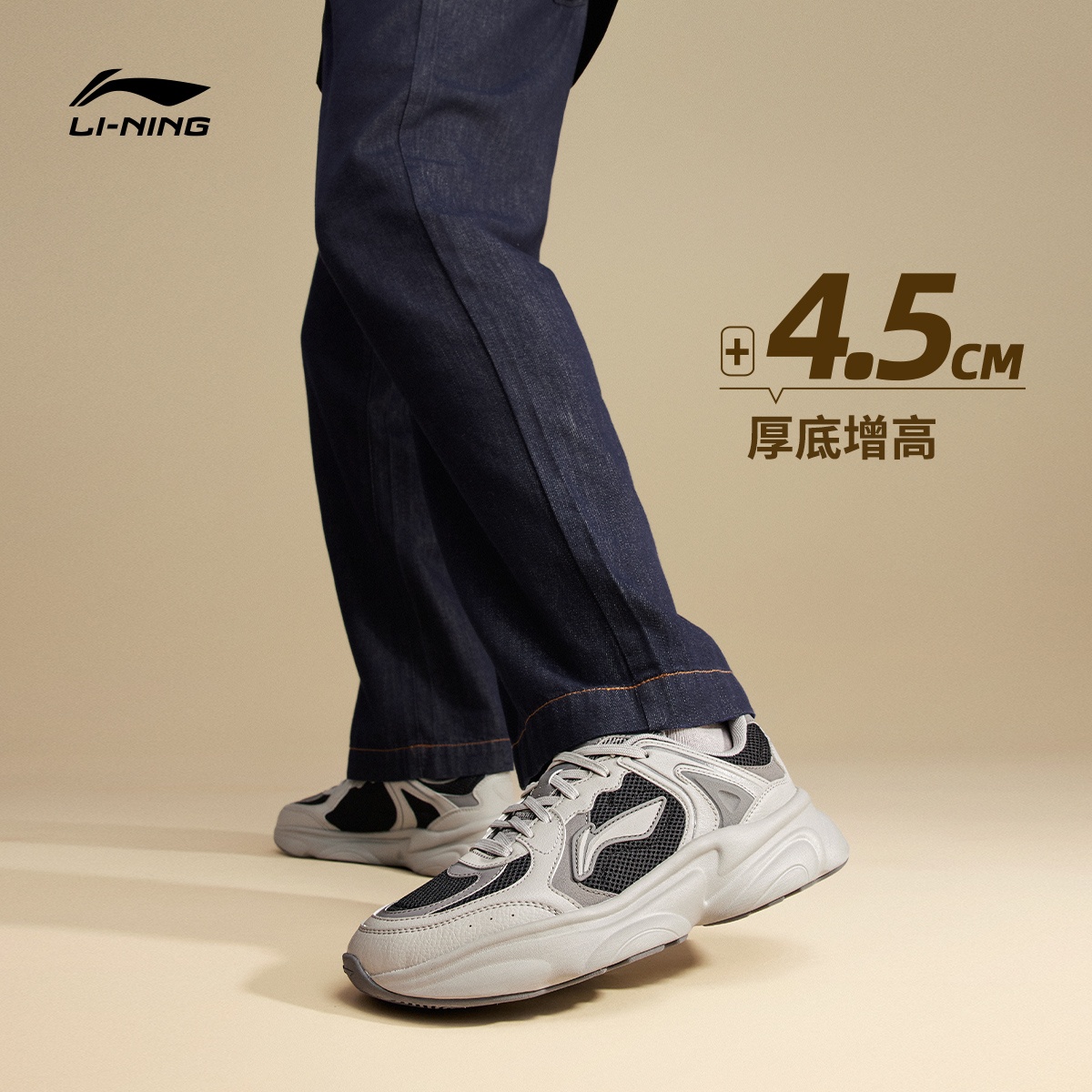 休闲鞋 轻便运动鞋 男鞋 网面舒适复古老爹鞋 2025秋新款 李宁奶椰