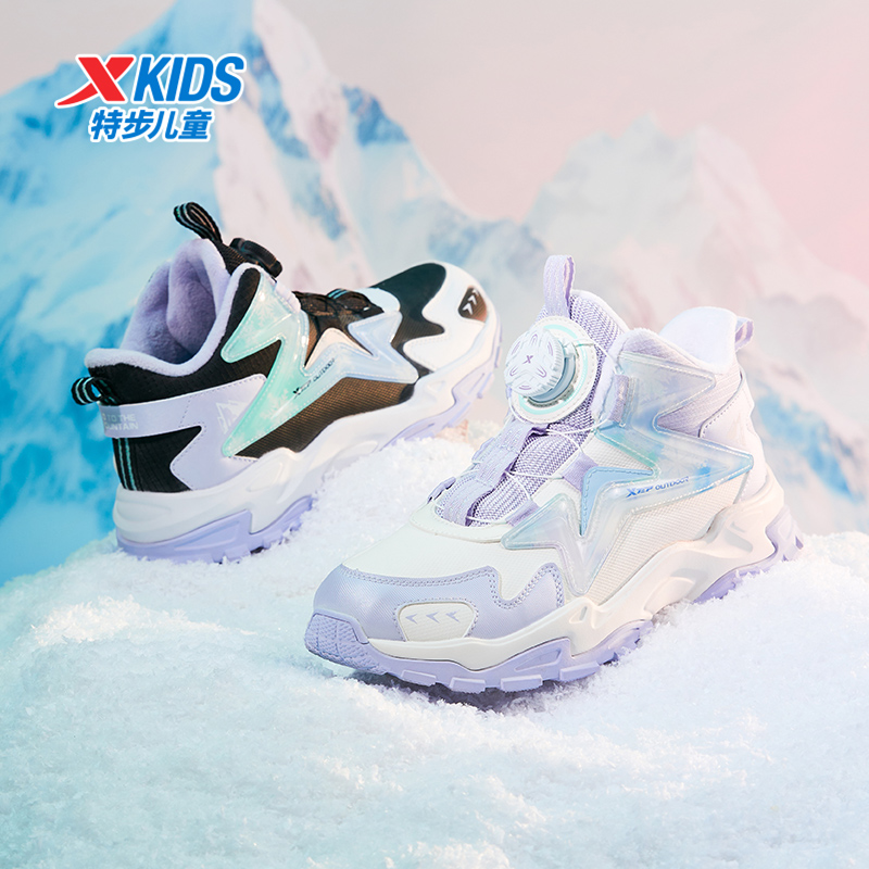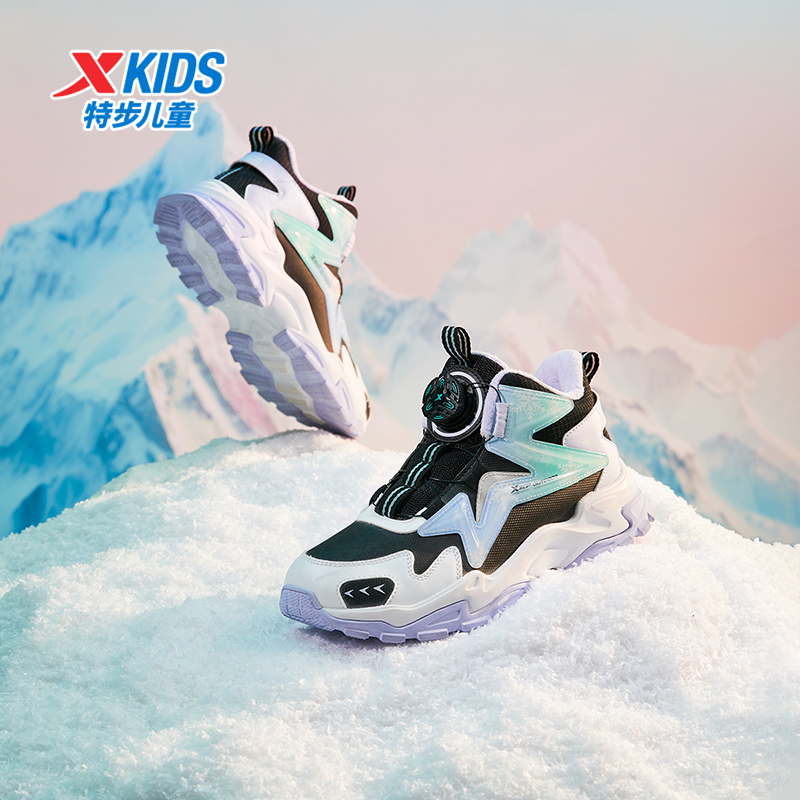 女童中大童便捷保暖舒适高帮旋转纽扣儿童运动鞋 棉鞋 冬季 特步童鞋