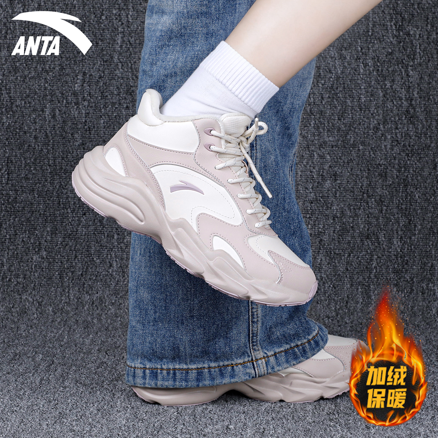 秋冬2025新款 加绒鞋 高帮加厚保暖皮面防泼水雪地靴 二棉鞋 安踏女鞋