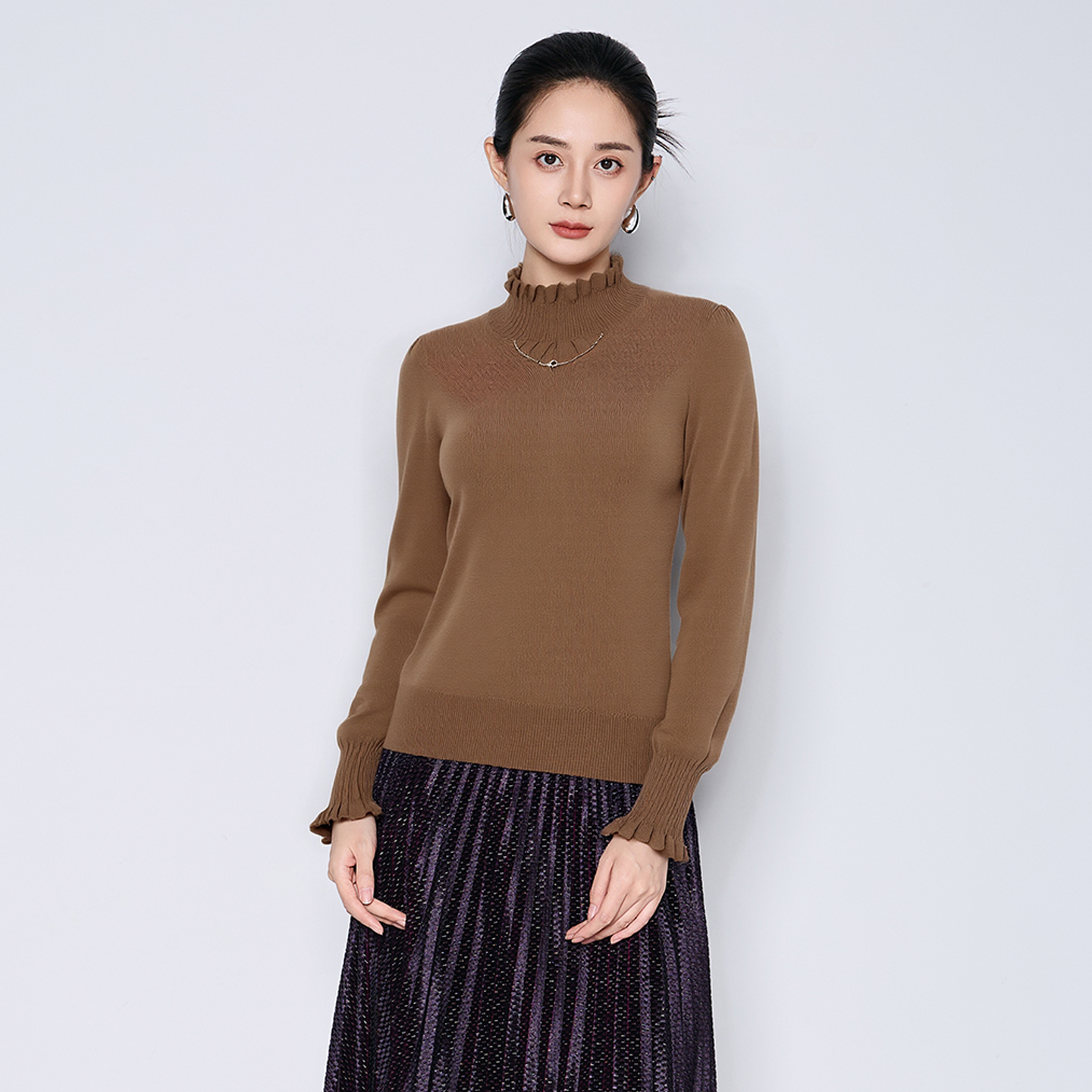 上衣胖mm秋冬 女木耳边半高领毛衣针织衫 加肥加大码 洋气内搭打底衫