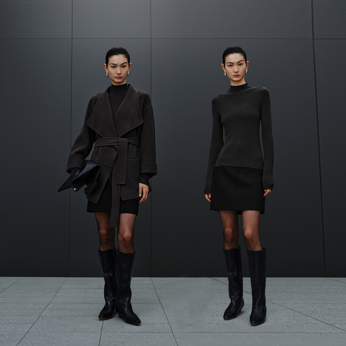 图曼朵灰色毛呢百褶半身裙女高腰加厚a字裙秋冬通勤面试中长半裙
