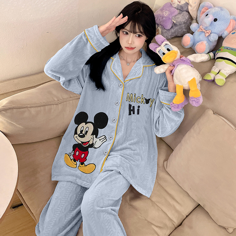 卡通甜美女士可外穿家居服套装 珊瑚绒睡衣女款 冬加厚加绒2025新款
