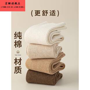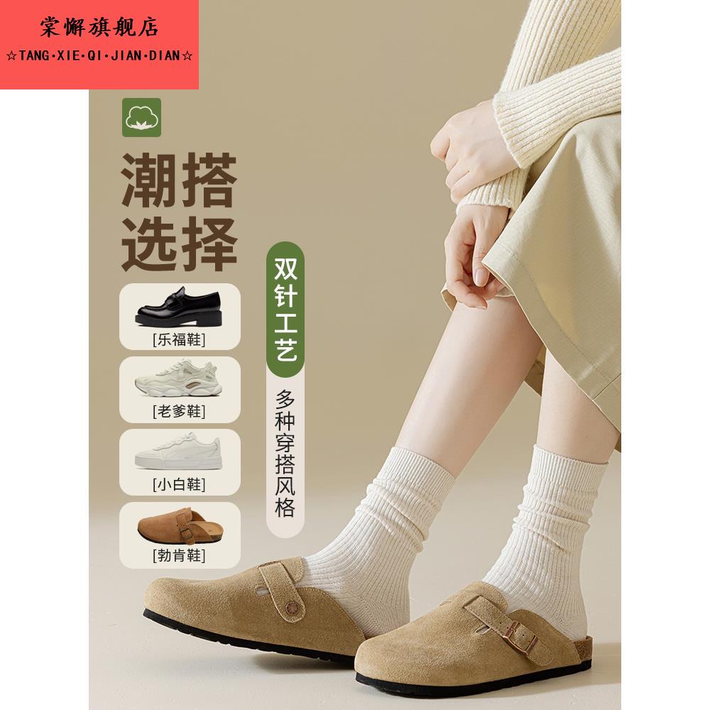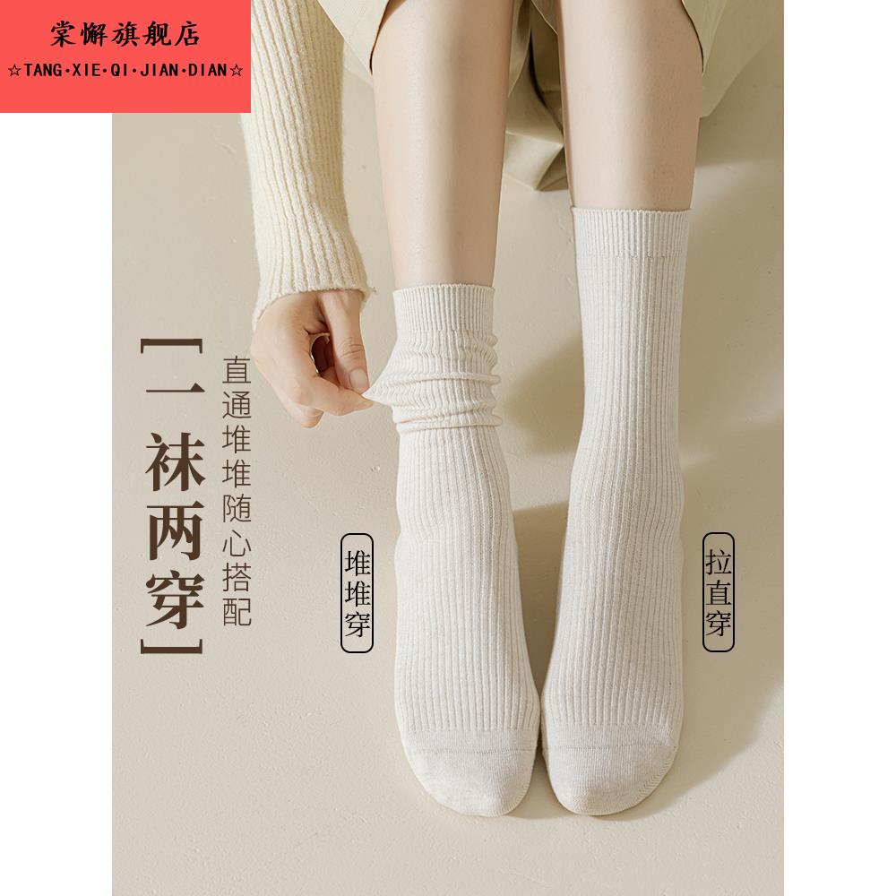 袜子女中筒袜纯棉春秋咖色美拉德堆堆袜搭配小皮鞋 秋春长袜 勃肯鞋