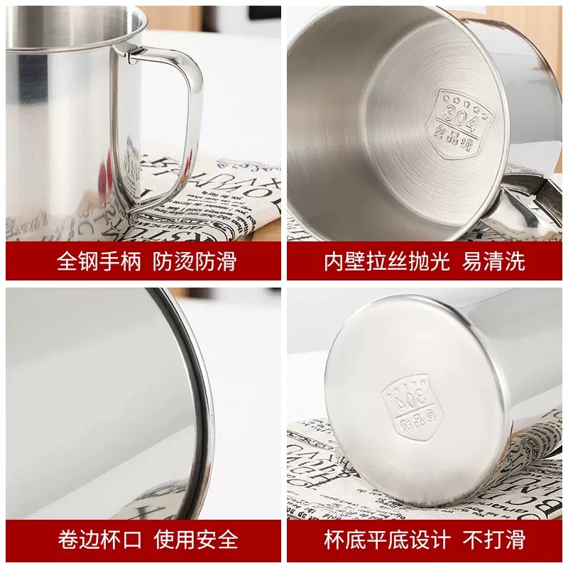 学校食堂304带盖不锈钢口杯办公水杯带盖学生饮水杯幼儿园儿童杯