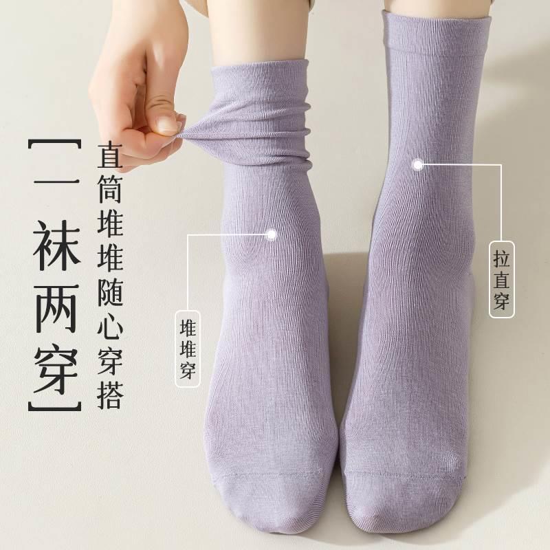 百搭堆堆长袜 款 袜子女春秋款 中筒袜女士日系纯色简约棉袜秋冬季