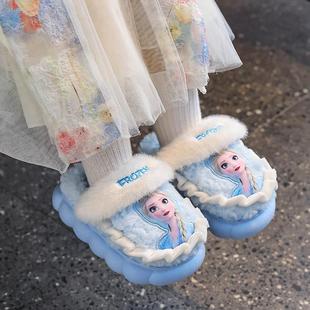 女童室内居家防水保暖宝宝棉拖鞋 新款 女孩秋冬季 爱莎公主儿童拖鞋