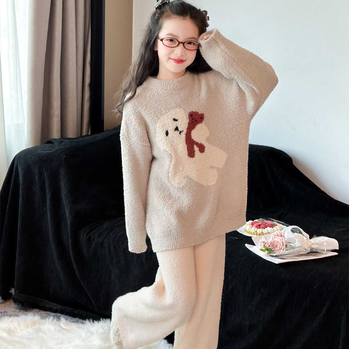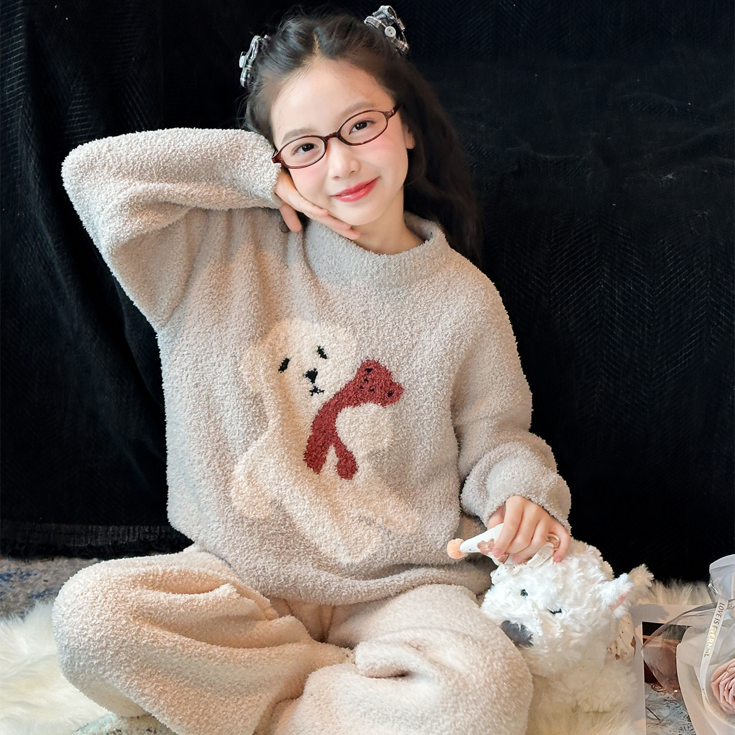 保暖家居服珊瑚绒两件套 儿童冬季 女童半边绒睡衣套装 秋冬2025新款