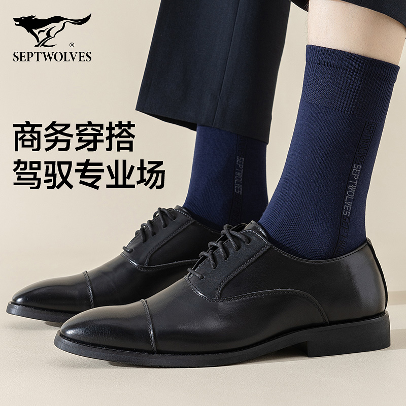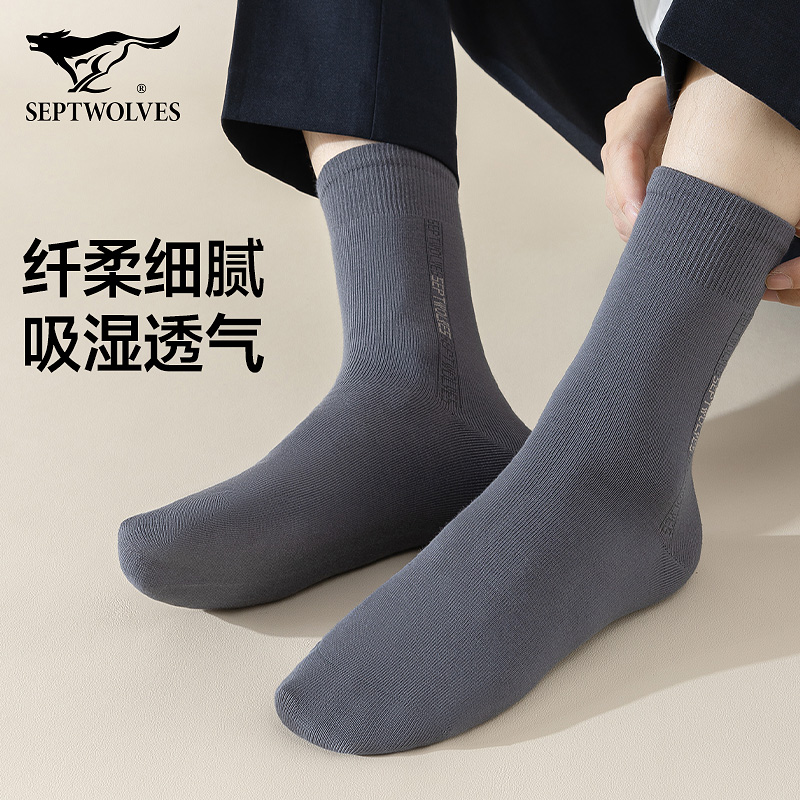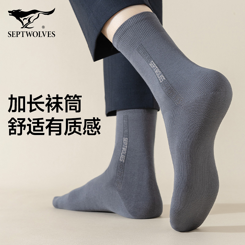 黑色商务男士 七匹狼棉袜男中筒袜秋冬季 加长袜筒防寒保暖2025新款