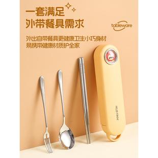 儿童餐具套装 小学生上学专用一人不锈钢筷子勺子三件套便携收纳盒