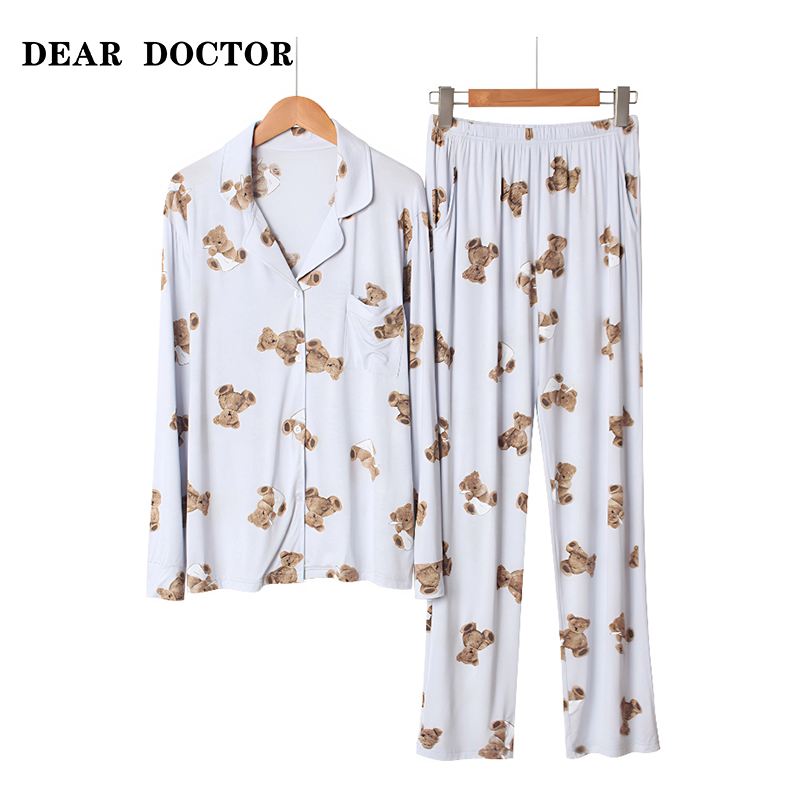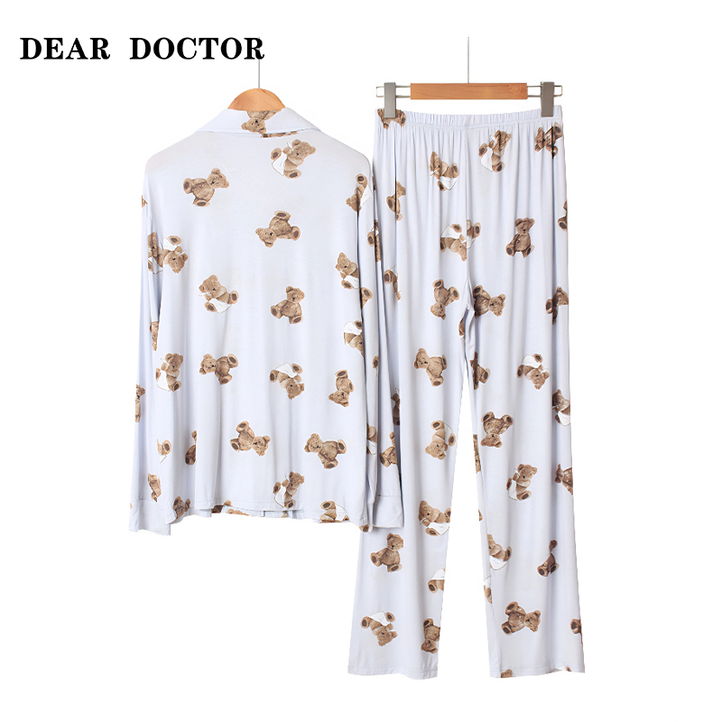 时尚 柔软莫代尔棉大码 开衫 套装 家居服 长袖 贝妍高级感睡衣女春秋季
