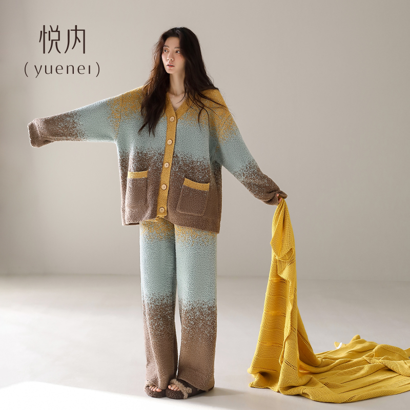 悦内半边绒睡衣女款 秋冬珊瑚绒加购加绒软绵绵家居服毛绒渐变 冬季