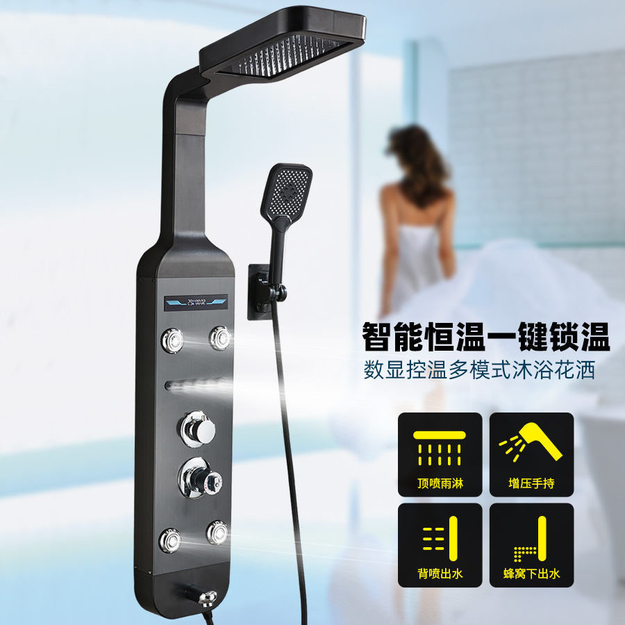 智能淋浴屏花洒套装 家用淋雨浴室洗澡沐浴器卫生间精铜增压喷头