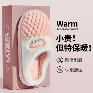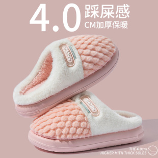 室内家居家防滑加绒厚底踩屎感毛毛绒保暖情侣拖鞋 棉拖鞋 女秋冬季