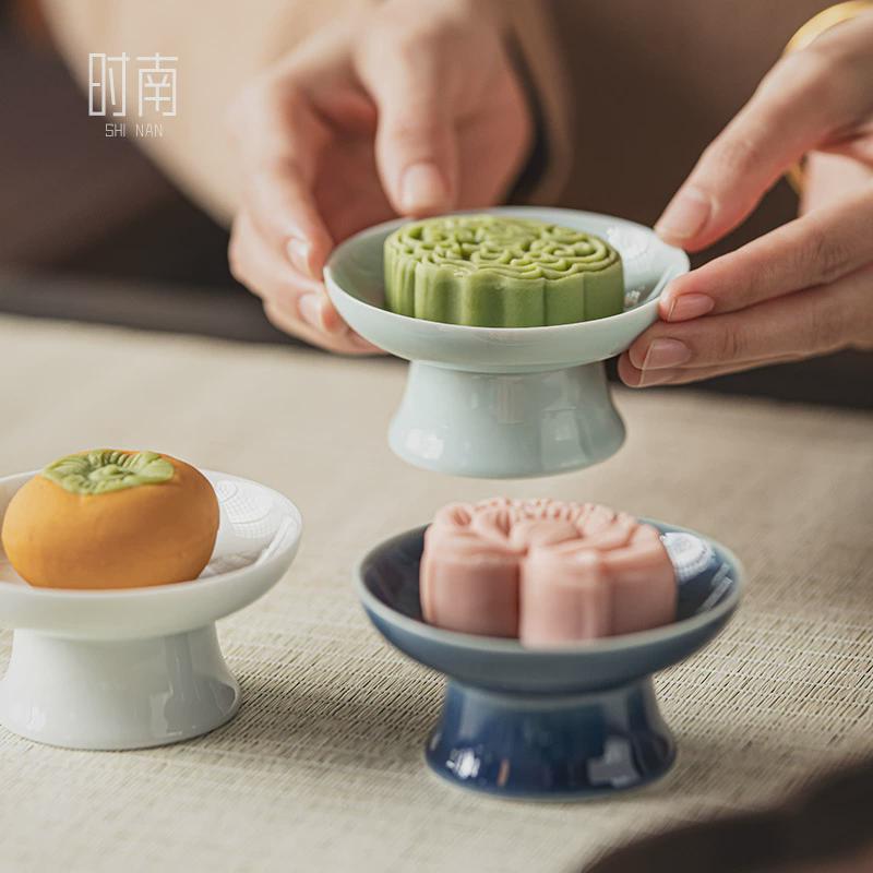高脚宋代陶瓷茶点盘中式 禅意点心盘复古精致糕点盘围炉煮茶水果盘