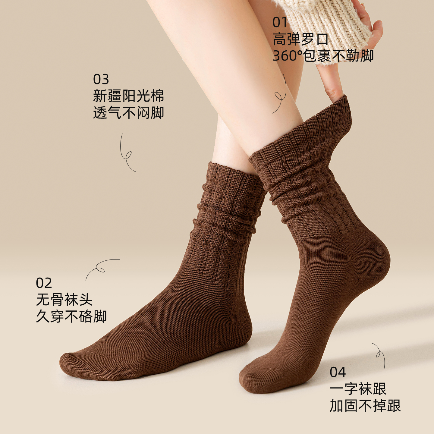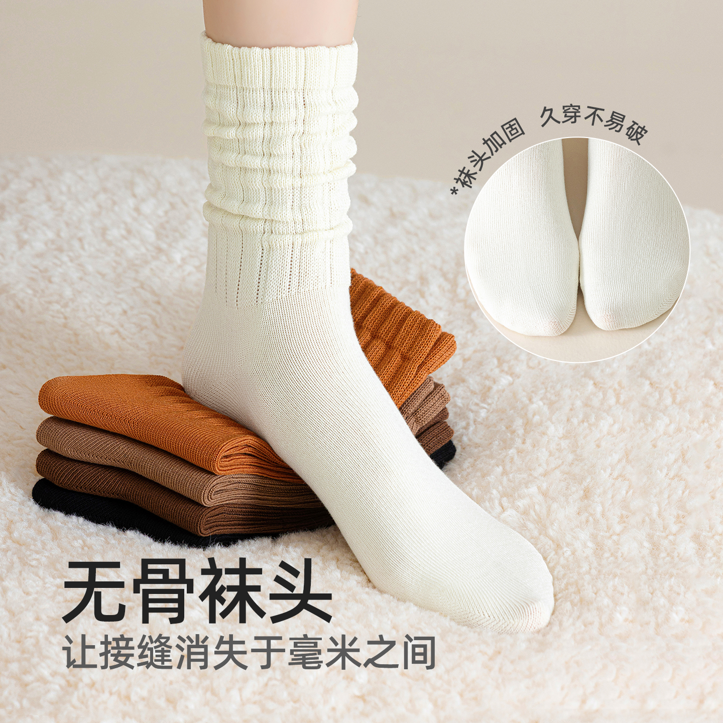 无骨堆堆长袜 纯棉中筒袜抗菌防臭防脚气秋冬季 袜子女2025新款 爆款