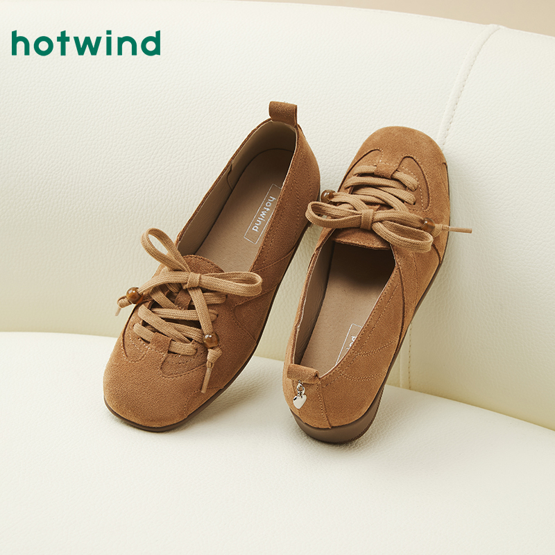 新款 2025年秋季 女士时尚 晚晚风鞋 热风棕色浅口单鞋 子平底单鞋 女鞋