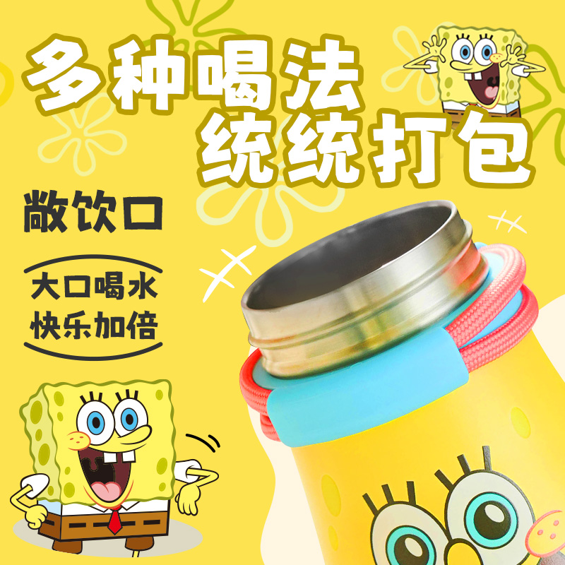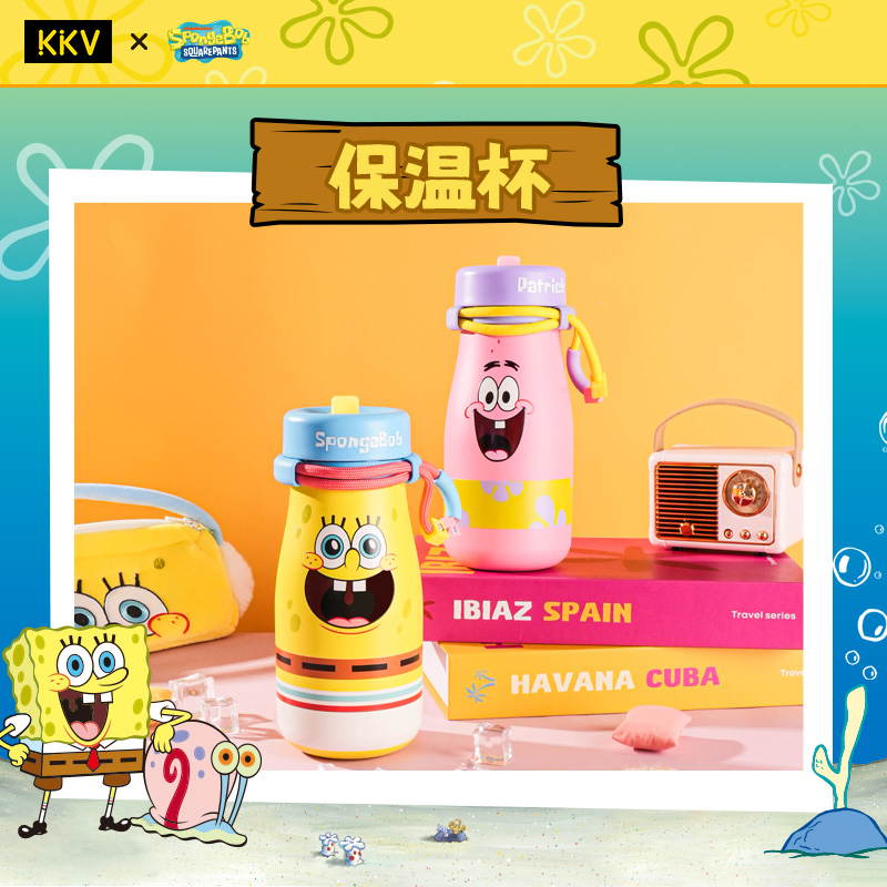 KKV海绵宝宝大容量316高颜值保温杯可爱卡通儿童防摔保温水杯