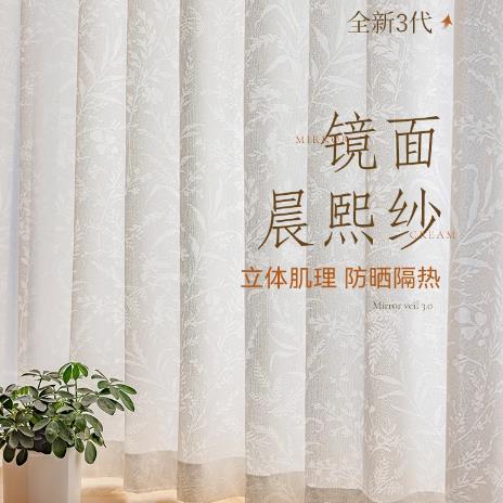 防晒隔热纱帘镜面纱窗帘透光不透人飘窗客厅阳台遮阳白纱窗纱