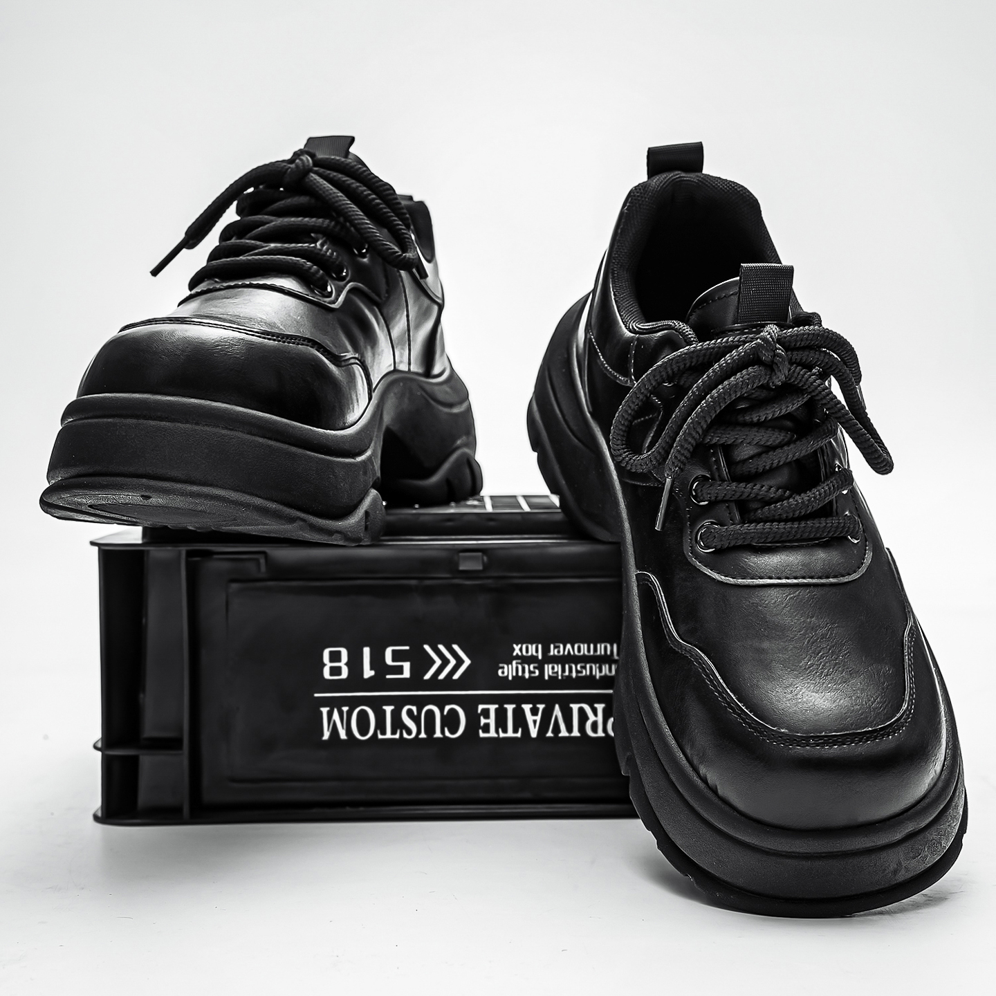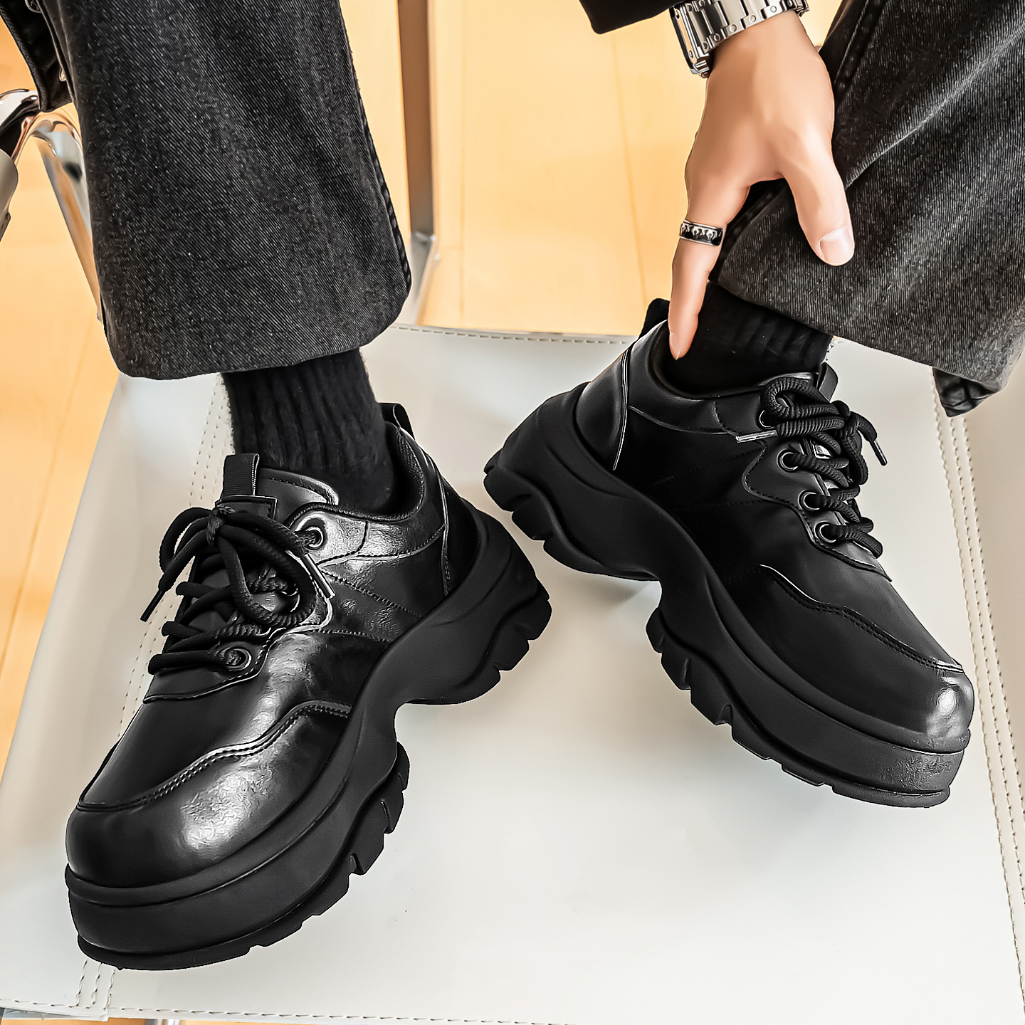 运动软底上班开车增高皮鞋 年轻人商务休闲全黑公务鞋 秋季 德比男鞋