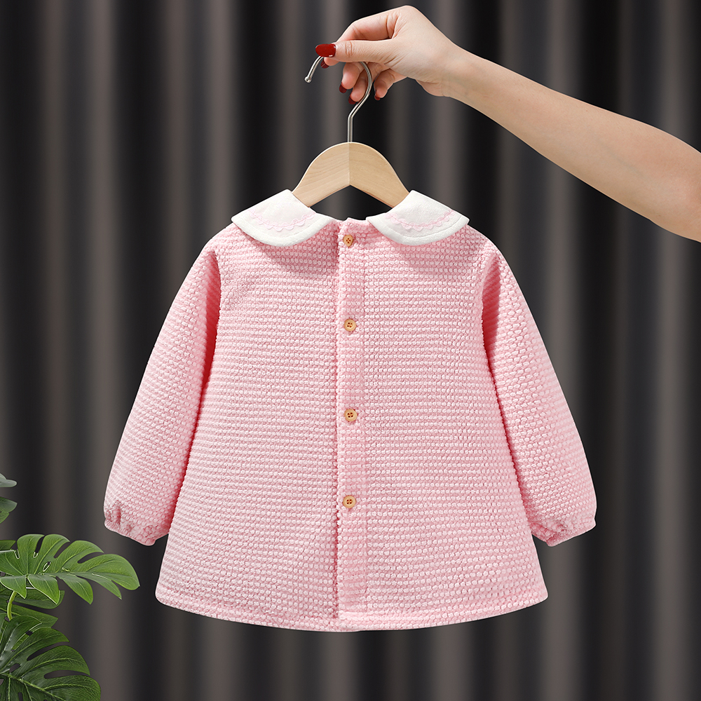 秋冬女宝宝防水防脏罩衣豆豆绒加厚儿童罩衣幼儿园围裙婴幼儿围兜