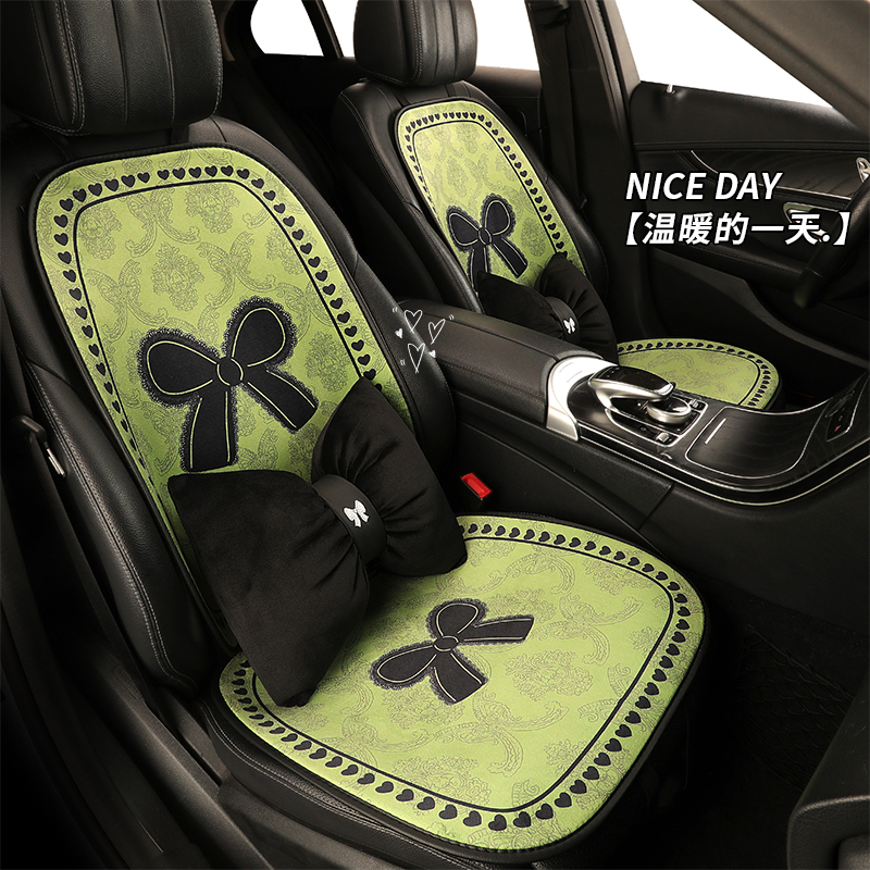 新款 毛绒保暖座垫秋冬短绒卡通网红座椅套女神 蝴蝶结汽车坐垫冬季