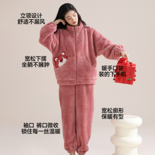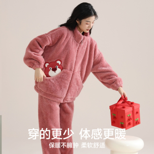 南极人睡衣女秋冬季 可外穿 珊瑚绒加绒加厚法兰绒家居服女生套装