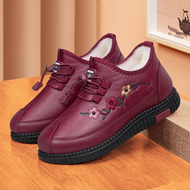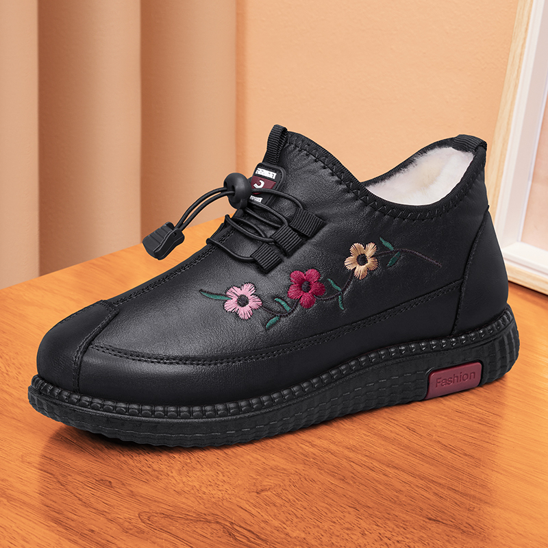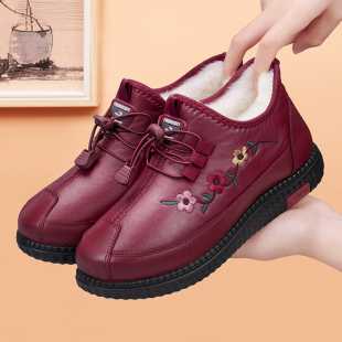 妈妈保暖防滑奶奶鞋 女加绒加厚羊毛中老年老北京布鞋 老人棉鞋 冬季