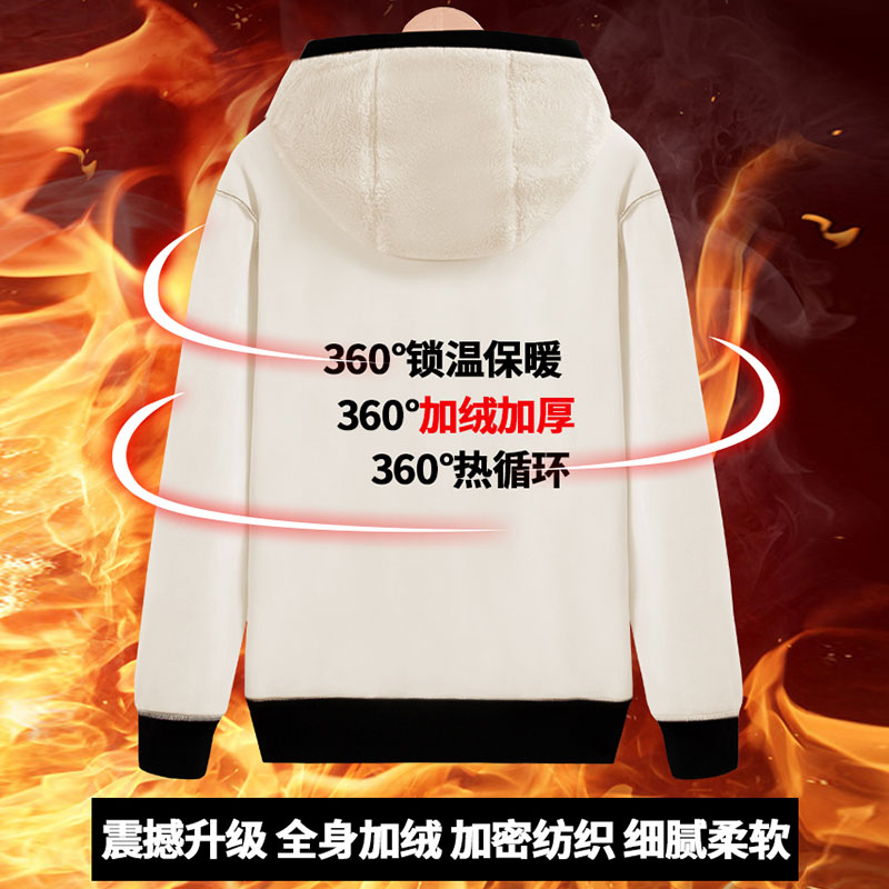 青少年学生加厚保暖外套男 上衣2025新款 加绒卫衣男连帽冬季 秋冬款