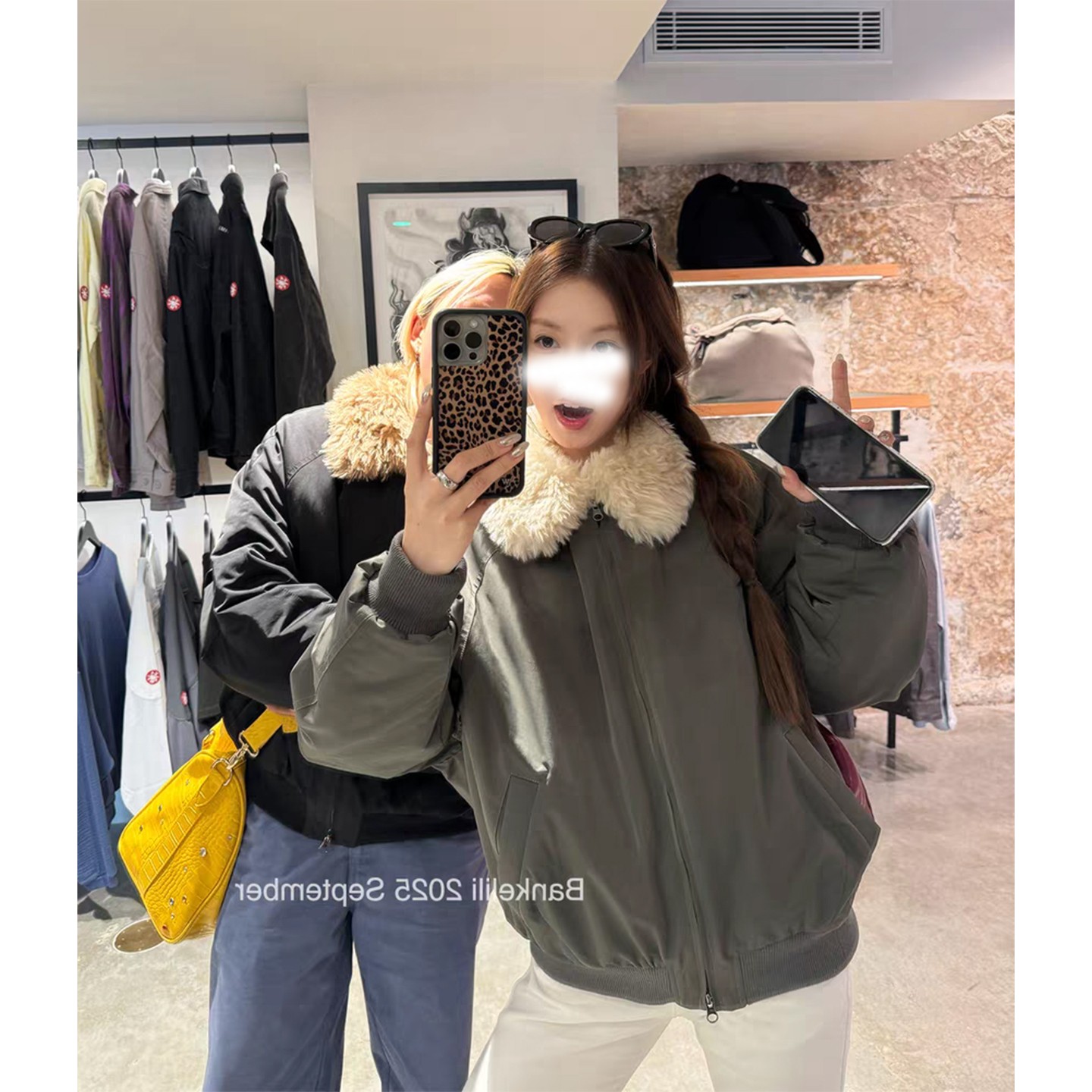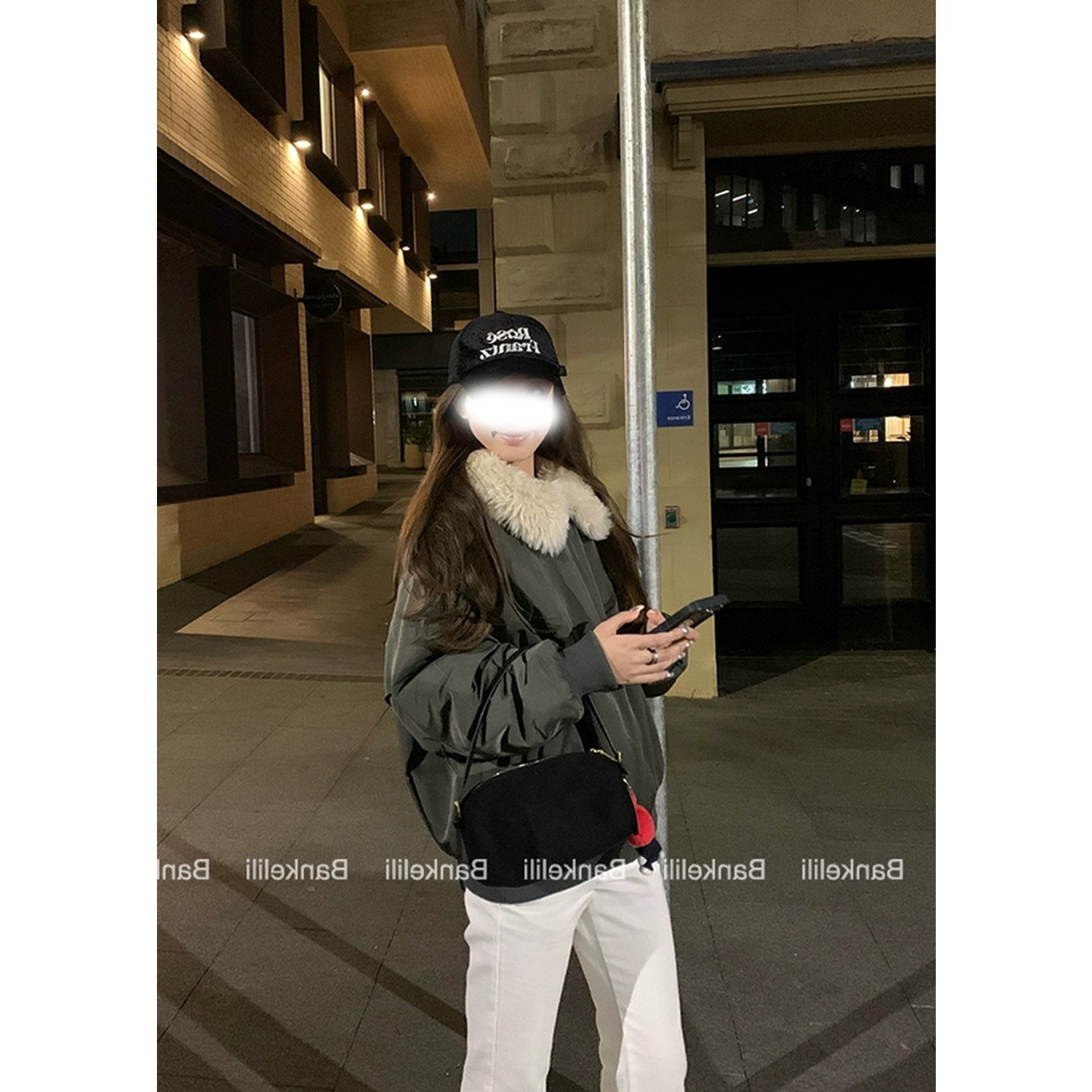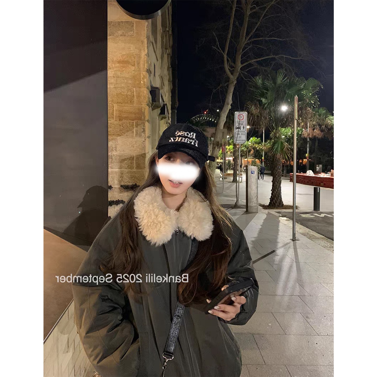 毛毛翻领宽松韩系棉服夹克外套女秋冬新款 百搭加厚保暖大衣女 时尚