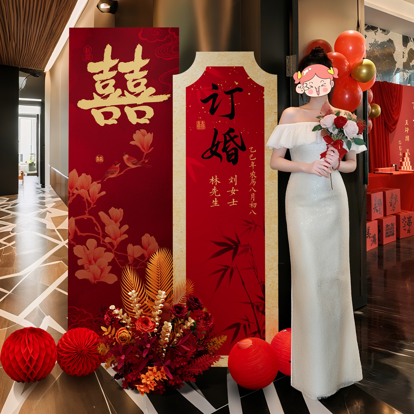 订婚布置场景装 高级感女方出阁回门宴酒店门口kt板 饰迎宾牌新中式