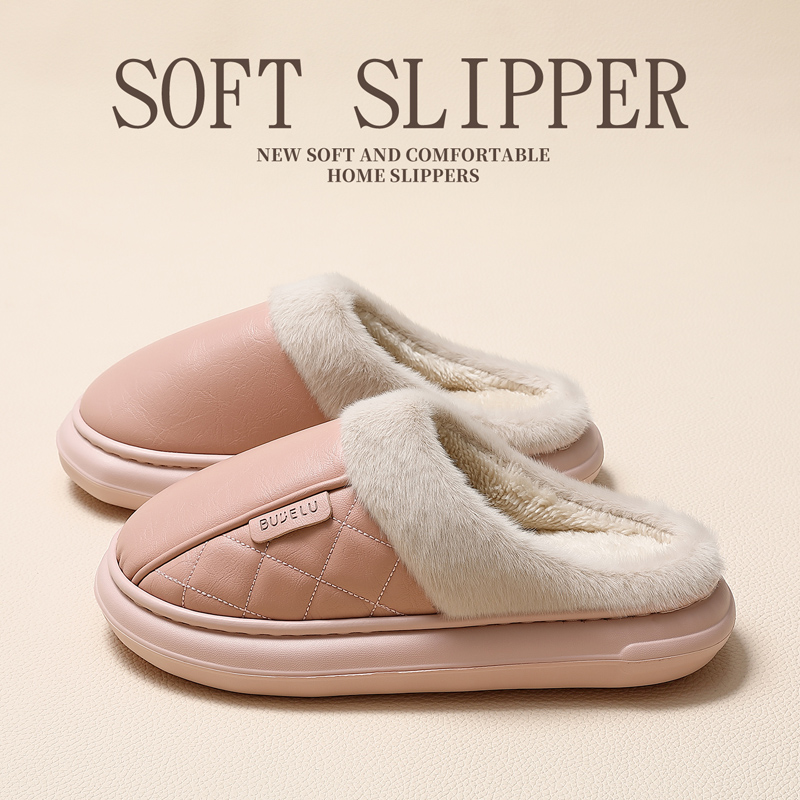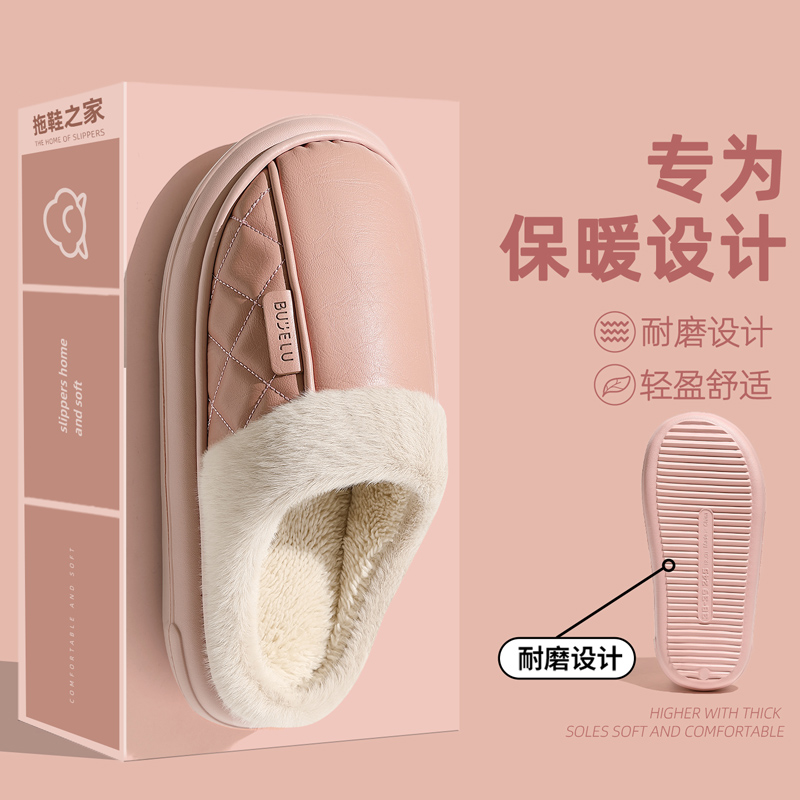 老人2025新款 秋冬季 室内家居厚底防滑静音毛绒棉拖 女款 防水棉拖鞋