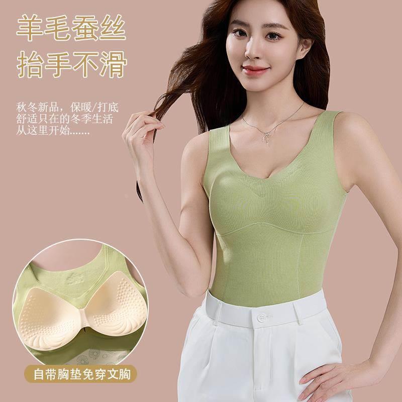 草本初色保暖背心女带胸垫秋衣2025新款 内搭肌底衣 秋冬吊带打底衫
