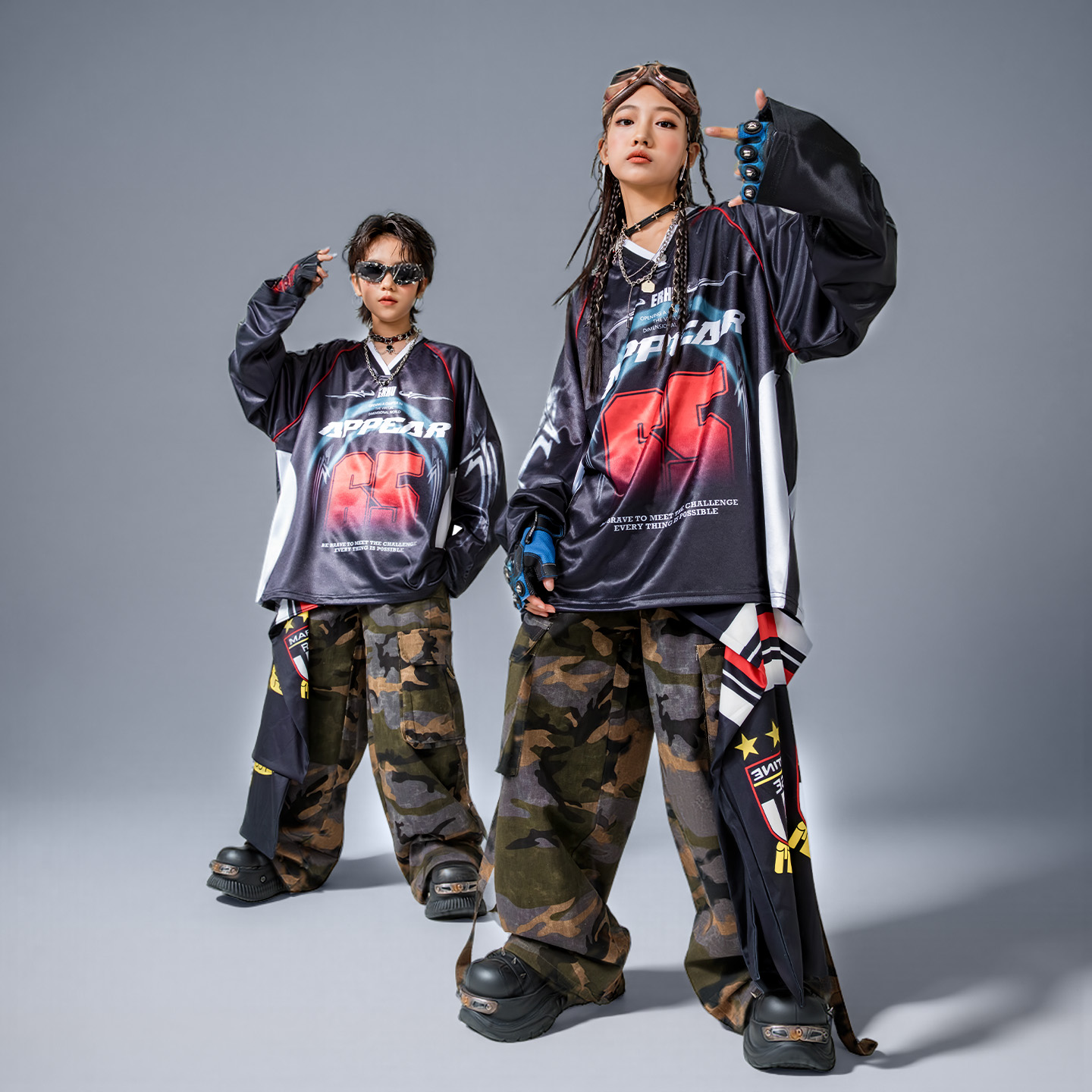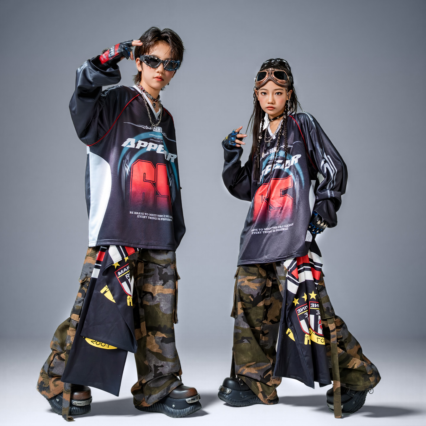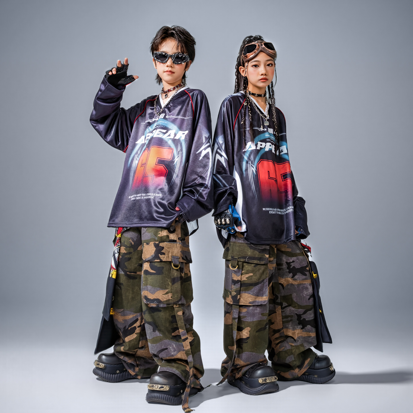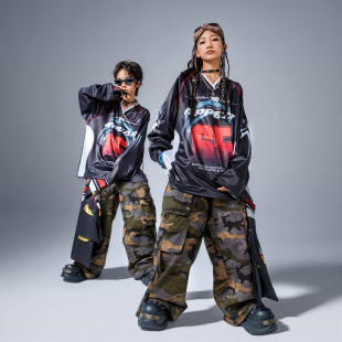 儿童街舞演出服嘻哈hiphop男女童美式 少儿舞台服潮酷帅 复古风套装