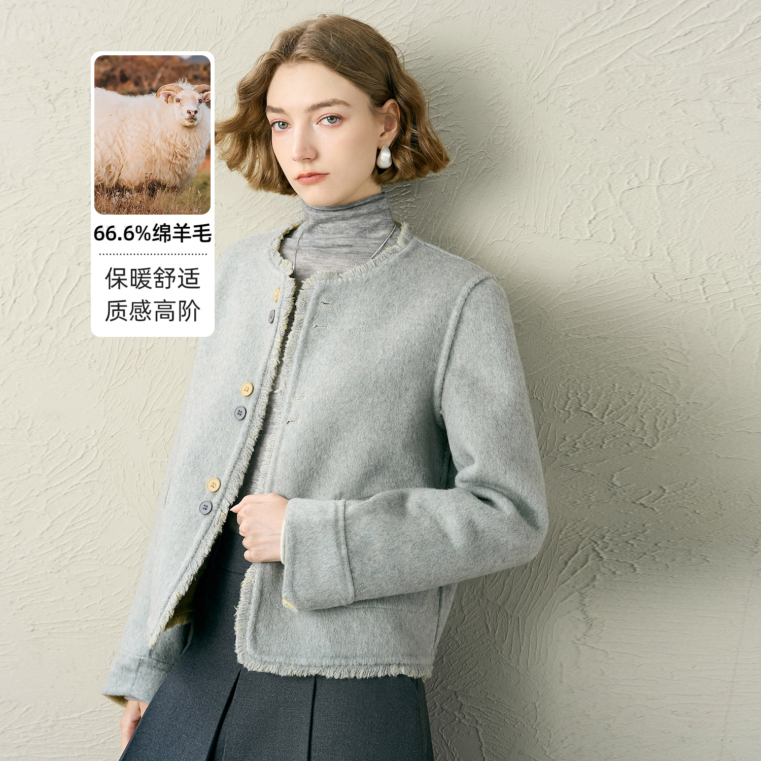 新款 羊毛呢小个子百搭显瘦休闲减龄外套秋冬 高端双面绒大衣女短款